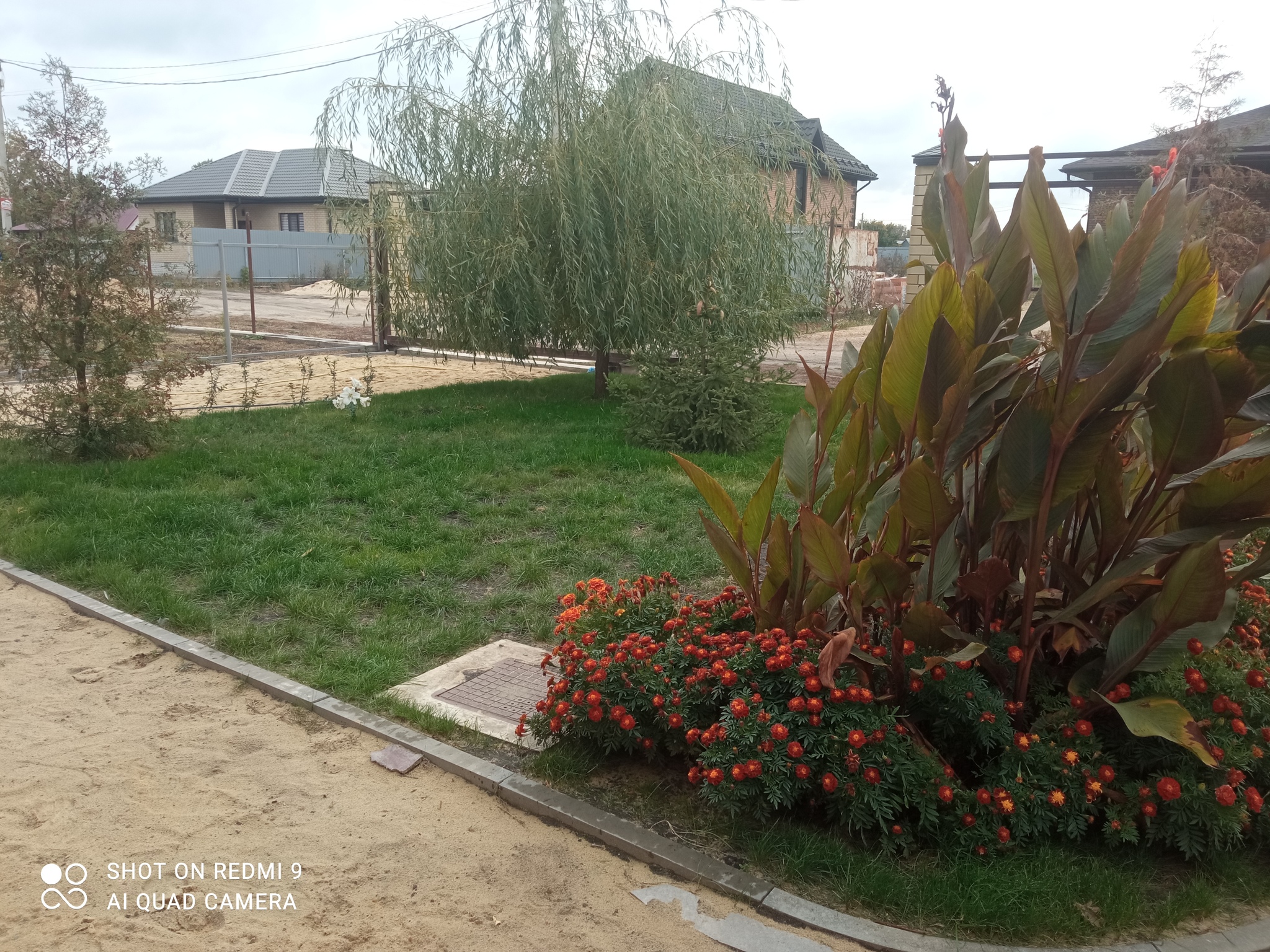 Осталось сделать только забор) Всё остальное делал своими руками: газон с автополивом, клумбы с капельным поливом, качели (есть подробный пост в профиле).