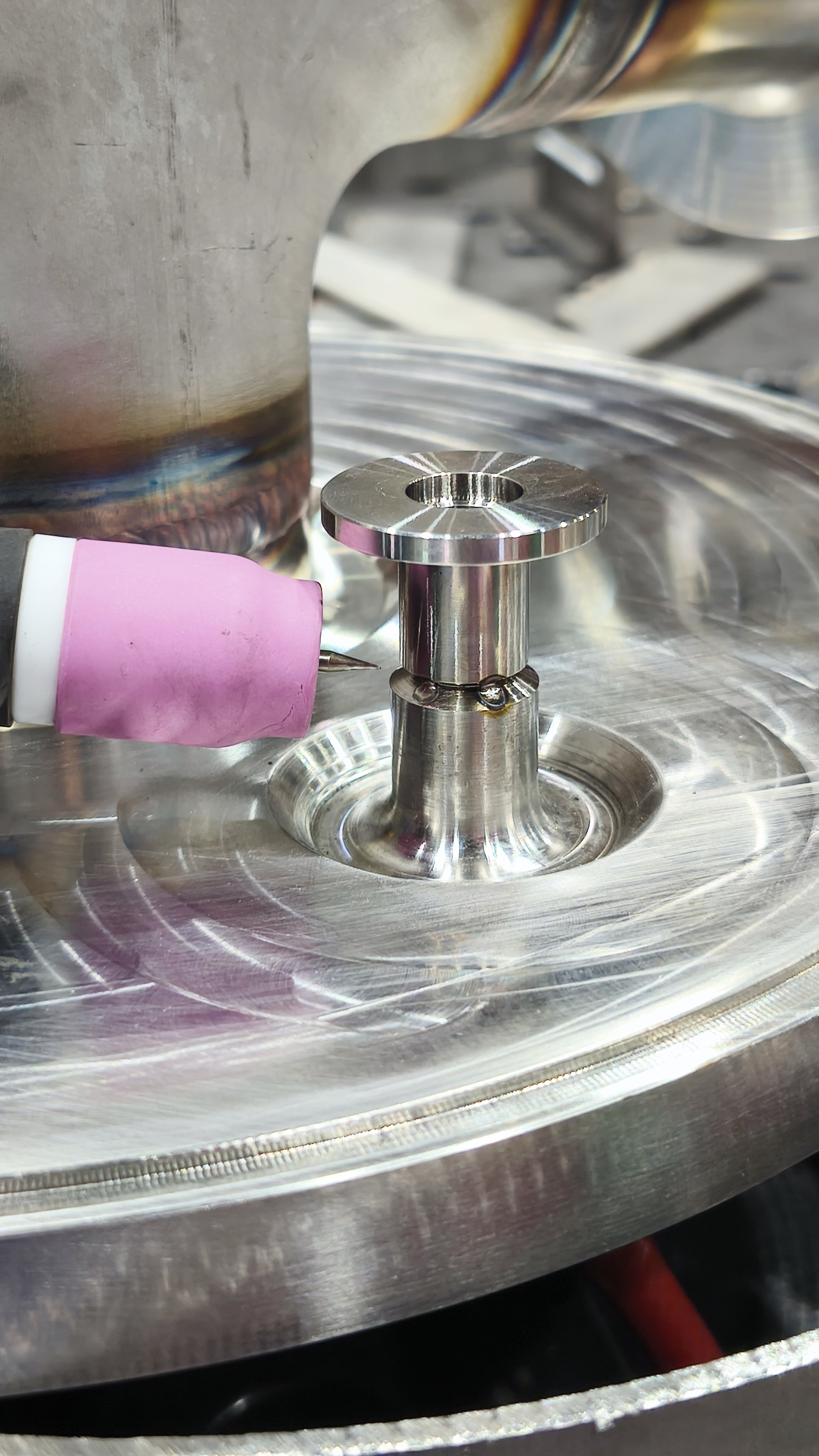 Но сначала — ознакомление с чертежами, снятие фасок, замеры и пробная сварка одного стыка. Это нужно для расчета итогового размера изделия после остывания сварочного шва, так как при сварке металл стягивается и его геометрия меняется в процессе остывания.