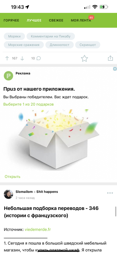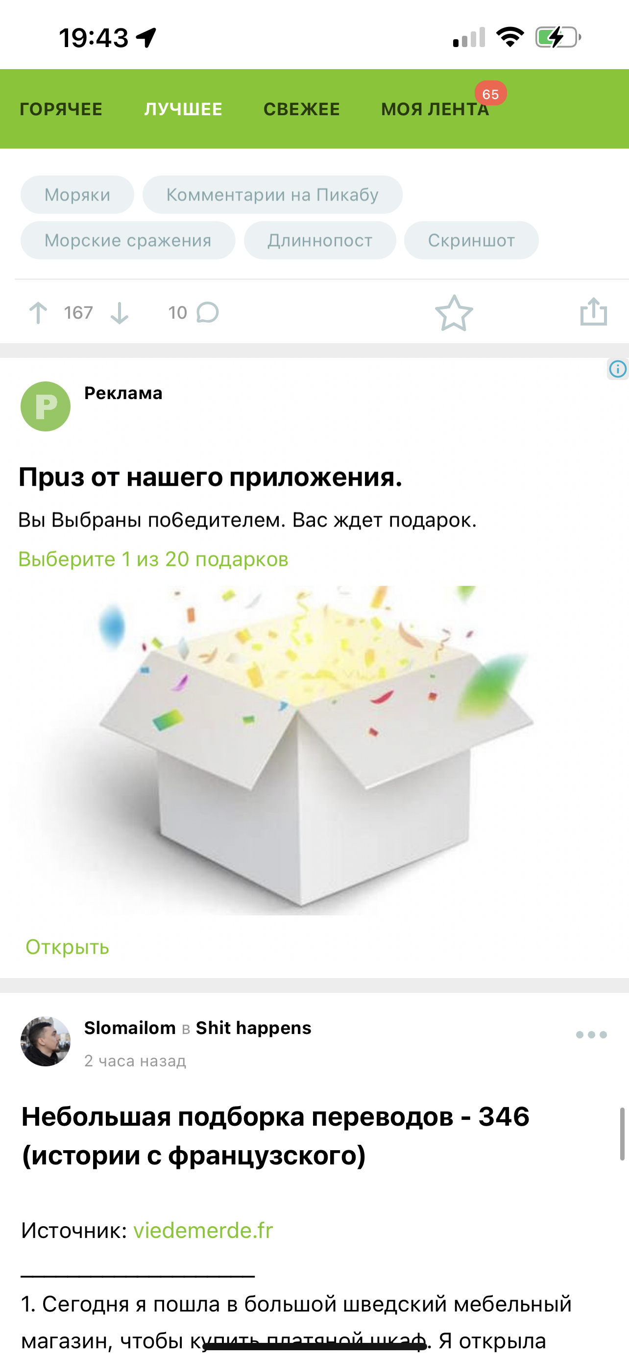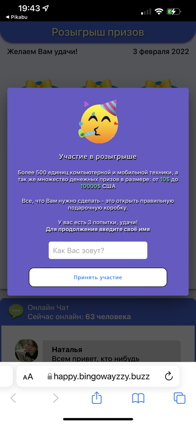 Этот и такого рода «вы выбраны победителем». Я даже пробовала изучить, мало ли… вдруг это от Пикабу реклама новой игры? Но нет, при переходе такое -