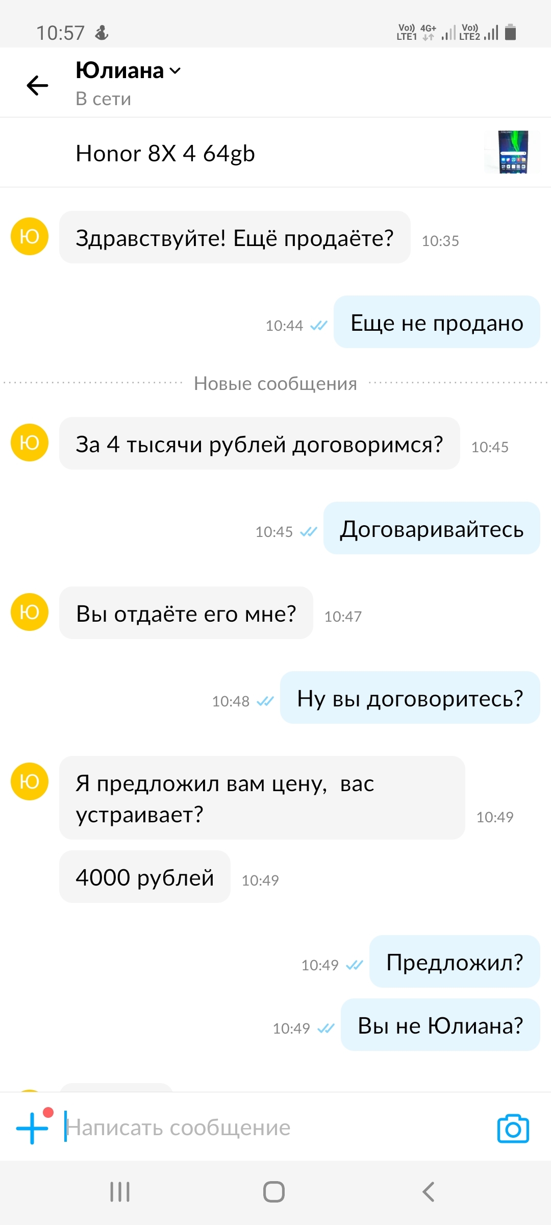 3 Gatotkaca А за пол цены отдадите? 4 года назад Цена стоит 8000, в среднем при цене 7500-10000 думаю нормально, ну немного можно уступить, но не 50% от суммы же. Без обоснования, просто так. Может я и грубо ответил, но предложение было не менее грубым. Авито Скриншот Объявление на Авито Длиннопост Ещё 0