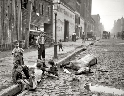 В среднем, одна лошадь "производит" в сутки от 7 до 15 кг навоза. Кроме того, лошадь "выдает" более литра мочи. Рабочие лошади тогда жили около 3 лет, и никто особо не заморачивался уборкой их трупов с улиц. Ждали, их разложения, чтобы было легче их распилить для утилизации. А теперь представьте количество мух, переносящих брюшной тиф и прочие болезни, и масштаб проблемы станет очевидным.