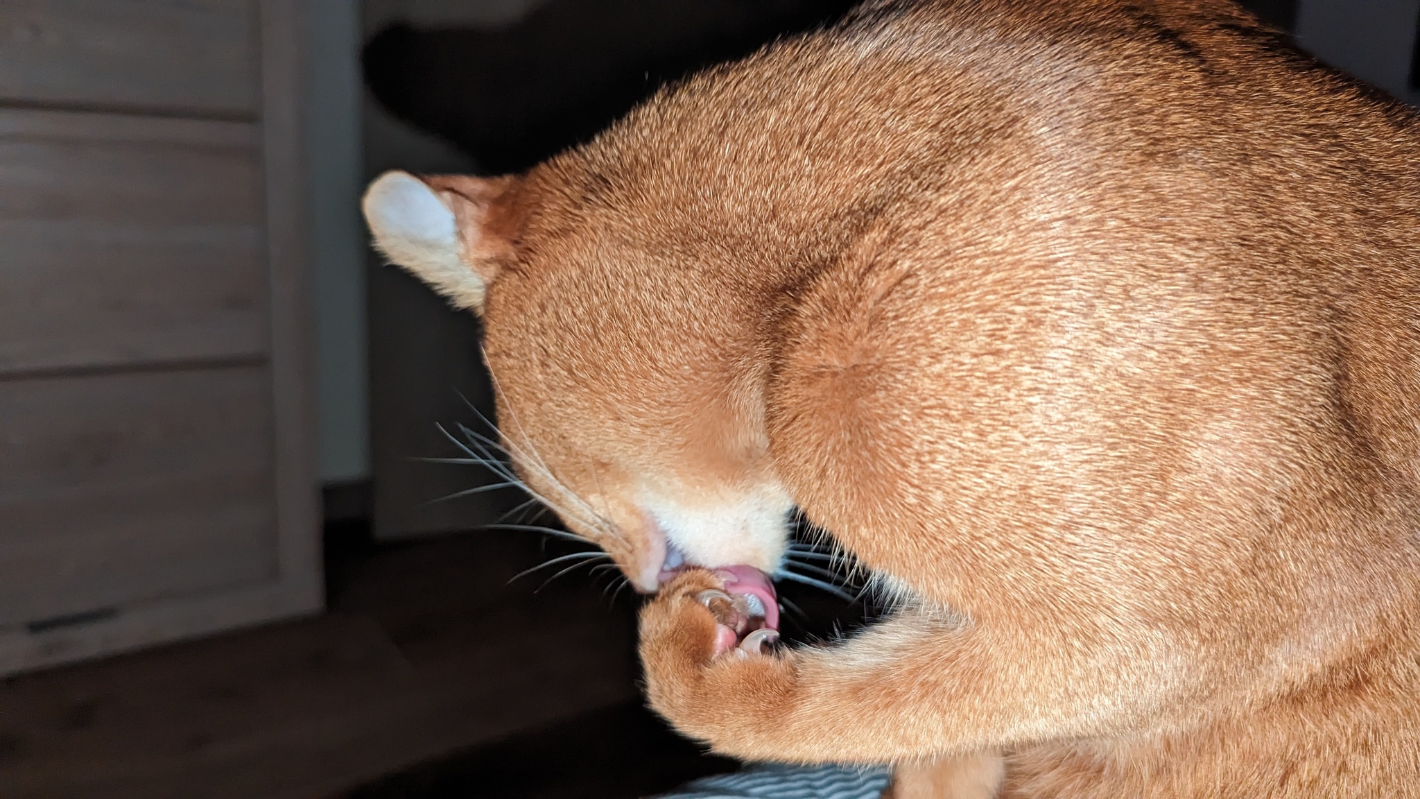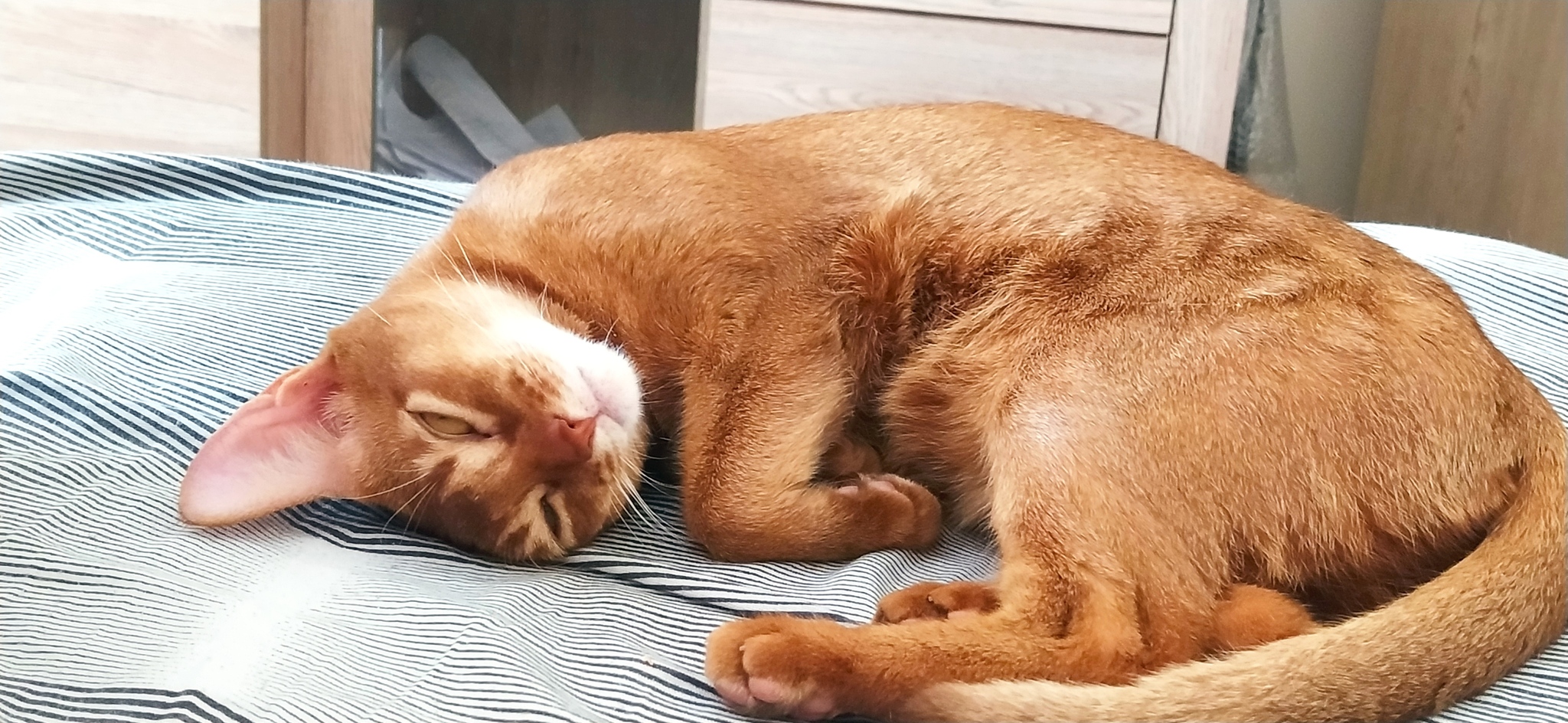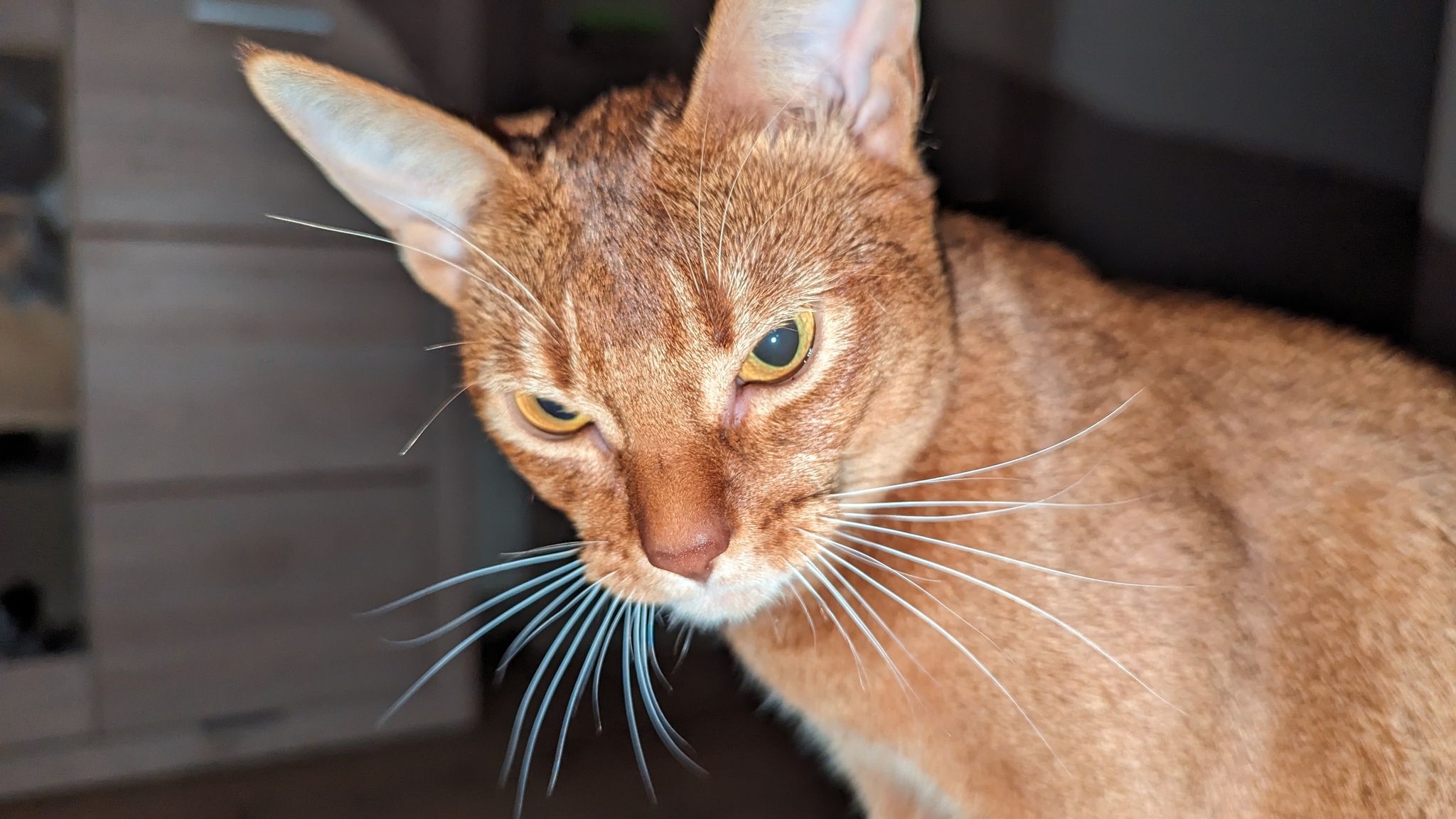 Приветствую, дамы и господа! Полтора года назад обзавелся абиссинским котенком, которая неумолимо выросла в абиссинскую кошку. До этого была по юности дворняга, а тут захотелось гладкошерстную и интересную. Что хотелось бы узнать: во всем рунете пишут, что абиссинские чуть ли не самые человеколюбивые, привязанные и прямо няшки, но на деле как-то всё немного иначе. Кошка по сравнению с дворнягами, которых я тискал в разных домах, очень своенравная. Не любит, когда берут на руки, хотя через какое-то время смиряется и дальше спокойно спит-потягивается и кайфует, когда пригрелась. Я её ругаю и легко наказываю, если делает недозволенное - типа как размотать полотенце или тулбумагу, бегать по столам или еще как-то вредничать. Если я взял её на руки и усадил себе на грудь - терпит всё тисканье, больно, естественно, не делаю. Так понимаю, что я для неё большой старший кот, которого она побаивается слегка, слушается пока я на виду, но непротив и по-компанейски поваляться, иногда сама приходит на кино. В то же время обычно спит всегда у жены в ногах, жена её не наказывает ни за что, даже ругает она её будто хвалит по интонациям, как будто кошка понимает русский язык, а не интонацию и жесты. Поэтому её кошка не слушает никак, а делает что хочет. Может отбирать еду из тарелки, бегать по столам, шипеть на неё, лапой дать несильно. Этот нюанс тоже не как у других кошек, как я заметил. Обычно кошки ведь шипят уже когда крайне раздражены и агрессивны, наша же шипит когда ей просто не нравится. Потрогали не так, отбирают что нельзя и т.д. На меня мошет пошипеть или попробовать лапой когда совсем уж задираю, типа как тыкать-почесывать по ляжке (что ей почему-то не нравится) и после пары злобных зырканий может и зашипеть и ударить, но быстро забывает про это. При всем при этом как и сказал - спит только с женой обычно, громко орет и зовет жену, когда та уходит на прогулку\до магаза. Когда уходим вдвоем - такой реакции нет, по приходу зевает-потягивается, т.е. спала спокойно пока мы отсутствовали. Когда жена приходит кошка часто пытается ломануться на лестницу, бегает-нюхает, пока её силком не возвращают обратно. При этом улицы побаивается, в переноске орать начинает уже на выходе из подъезда, без переноски так же орет на скамейке у подъезда и трясется как осиновый лист, хотя у нас достаточно тихо и нет особо никаких стрессов. По дороге к ветеринару бывает орет нонстоп, благо он близко. Пытался осторожно недолго выгуливать на улице в переноске и на руках, пытался приучивать к машине просто сидя в ней или катаясь рядом - без особого эффекта, поэтому стараемся без лишней нужды не водить и не возить её никуда. И кстати урчит она либо когда просит что-то, либо для самоуспокоения, если её на руки взять тискать, когда ей не особо хочется. А урчит с хрюканьем почти если взять чесалку\дешеддер, поначалу даже слюни пускала.