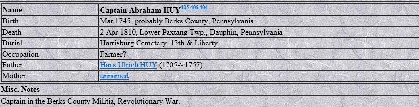 Abraham Huy - фермер, капитан милиции, герой американской революции.