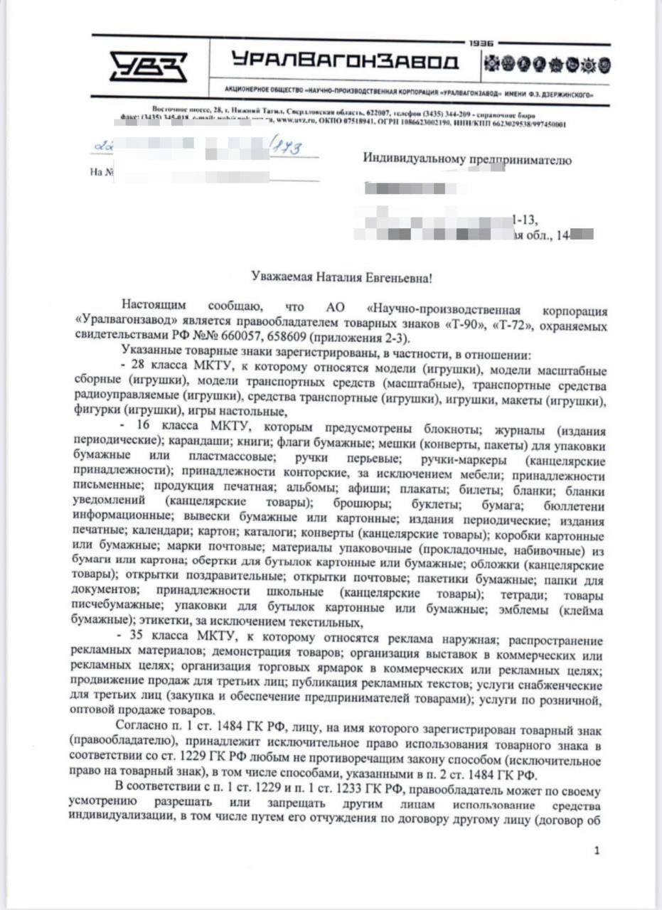 Суть в чем. С недавнего времени УВЗ (Уралвагонзавод) стал рассылать (ниже прикреплю) письма производителям сборных моделей и российским интернет-магазинам с претензией на незаконность использования, к примеру, названия Т-72 или Т-90. За это обещают штраф. Лицензия на приобретение стоит 5 млн рублей единоразово с последующими платежами по 1,5 млн в месяц независимо от объема продаж. Естественно такие суммы не сможет потянуть ни один отечественный (да и зарубежный производитель) сборных моделей.