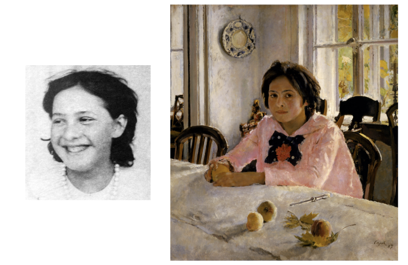 Слева — Вера Саввична Мамонтова. Фотография 1888 года. Справа — Валентин Серов. Девочка с персиками. 1887