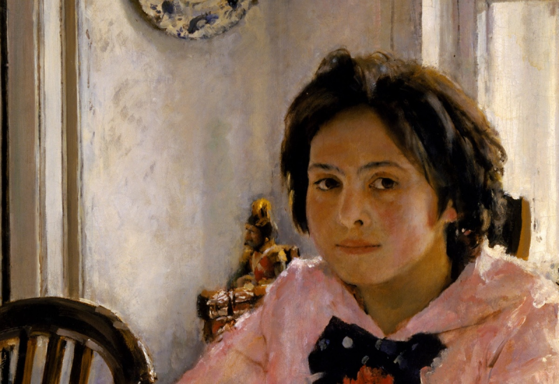 И чудо случилось в той самой абрамцевской столовой. Серов пишет Веру в ее любимом розоватом платье с черно-белым гороховым бантом. За ее спиной – окно, залитое рассеянным светом, наполняющим комнату теплым воздухом и легкостью. Убегающая диагональ стола уводит взгляд в дверной проем, добавляя пространству дыхания. А на заднем плане, как молчаливый свидетель истории, замер деревянный раскрашенный гренадер – трофей Мамонтовых из Троице-Сергиевой лавры (говорят, раскрасил его сам Серов!).