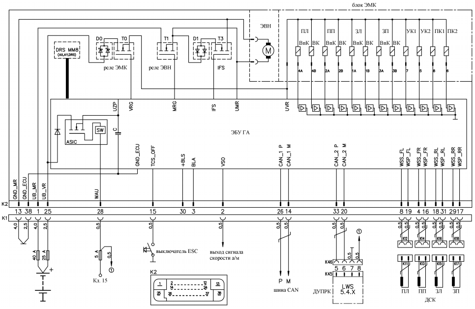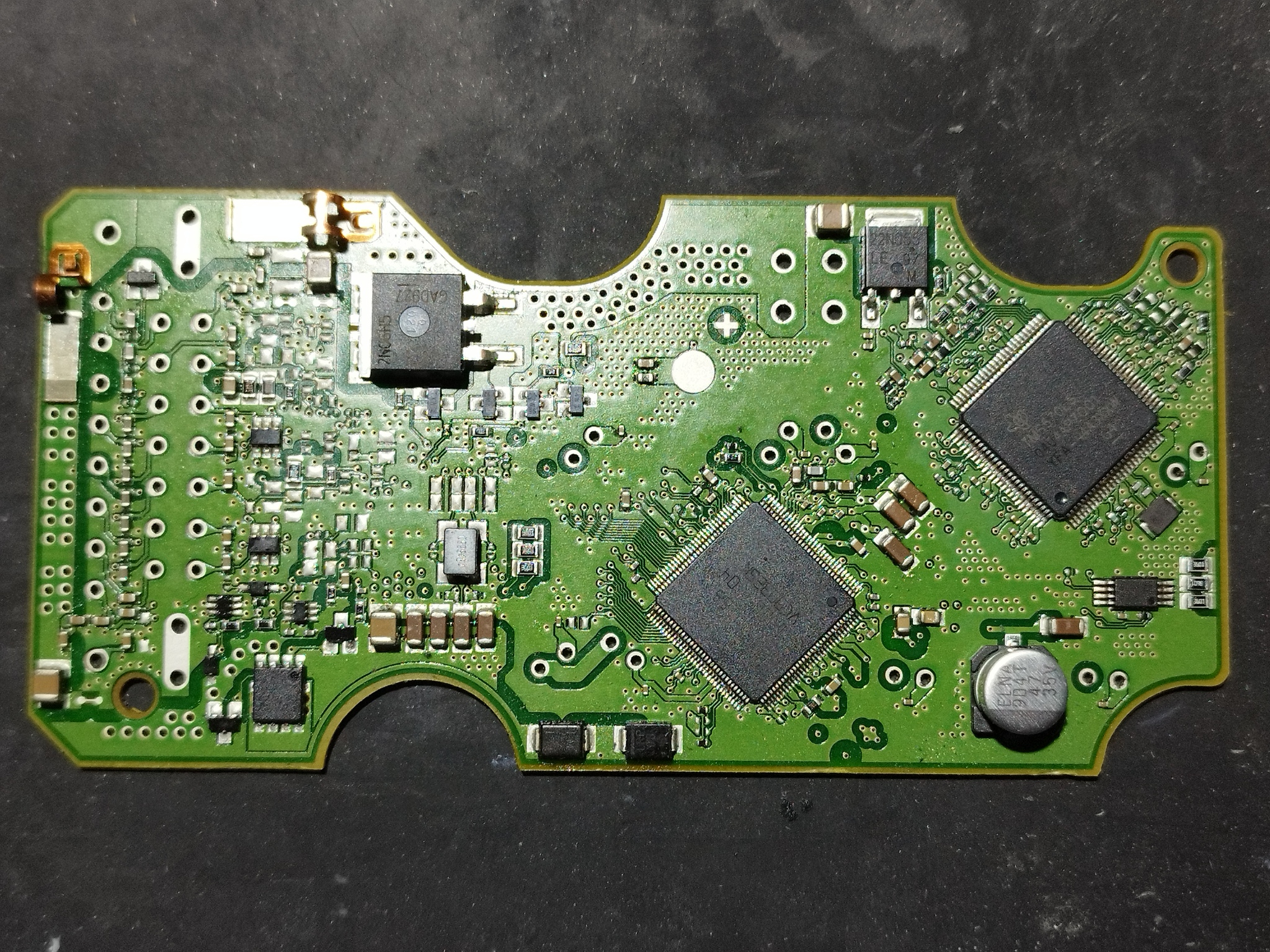 Предполагаю, что к 8ногому мосфету/сборке (asic? в обозначениях lada (на втором фото внизу справа) Как я понял, проблема в "электронном реле ЭКБ", чтобы это ни значило. ;) Типовая схема для подключения на столе +12В - 25,28, GND -38, CAN -14,26 - не работает, но достаточно соединить 13 и 38 пины, всё начинает выходить на связь. Как-то так. Либо какой-то мосфетик или диодик мне голову делает, либо где-то дорожка отгорела в межслое.