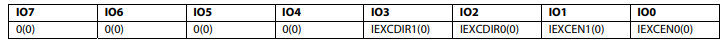 Биты IEXCDIR1 IEXCDIR0 позволяю выбрать режим работы токовых выходов, а биты IEXCEN1 IEXCEN0 задают номиналы тока.