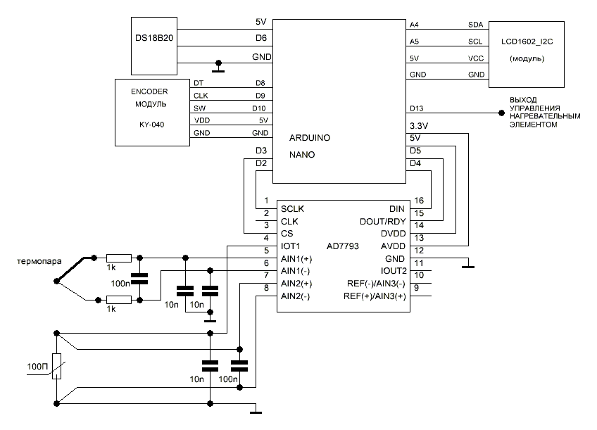 AD7793 + термопара + термометр сопротивления (Arduino)