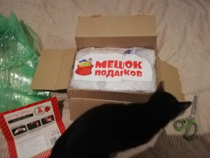 Вот так выглядит почти 4 килограмма счастья. Отдел котоинспекции все проверил и пронюхал, быстро дали добро на вскрытие) Вообще, история получения началась раньше, чем я получила заветную коробку. Моя Снегурочка написала мне в ватсапе и устроила минипраздник, задавая загадки на новогоднюю тематику. И даже простила мою затупку на одной из)))