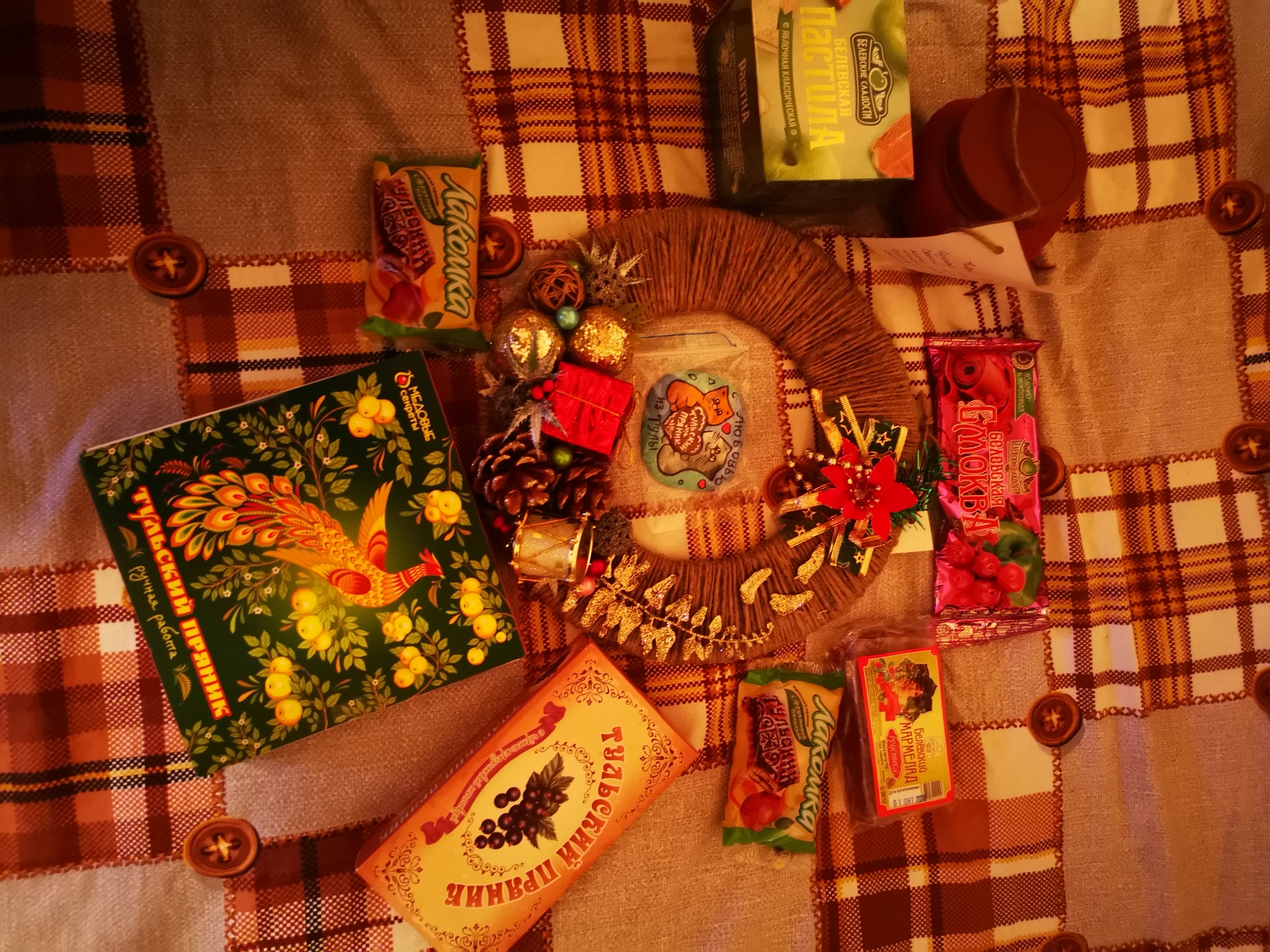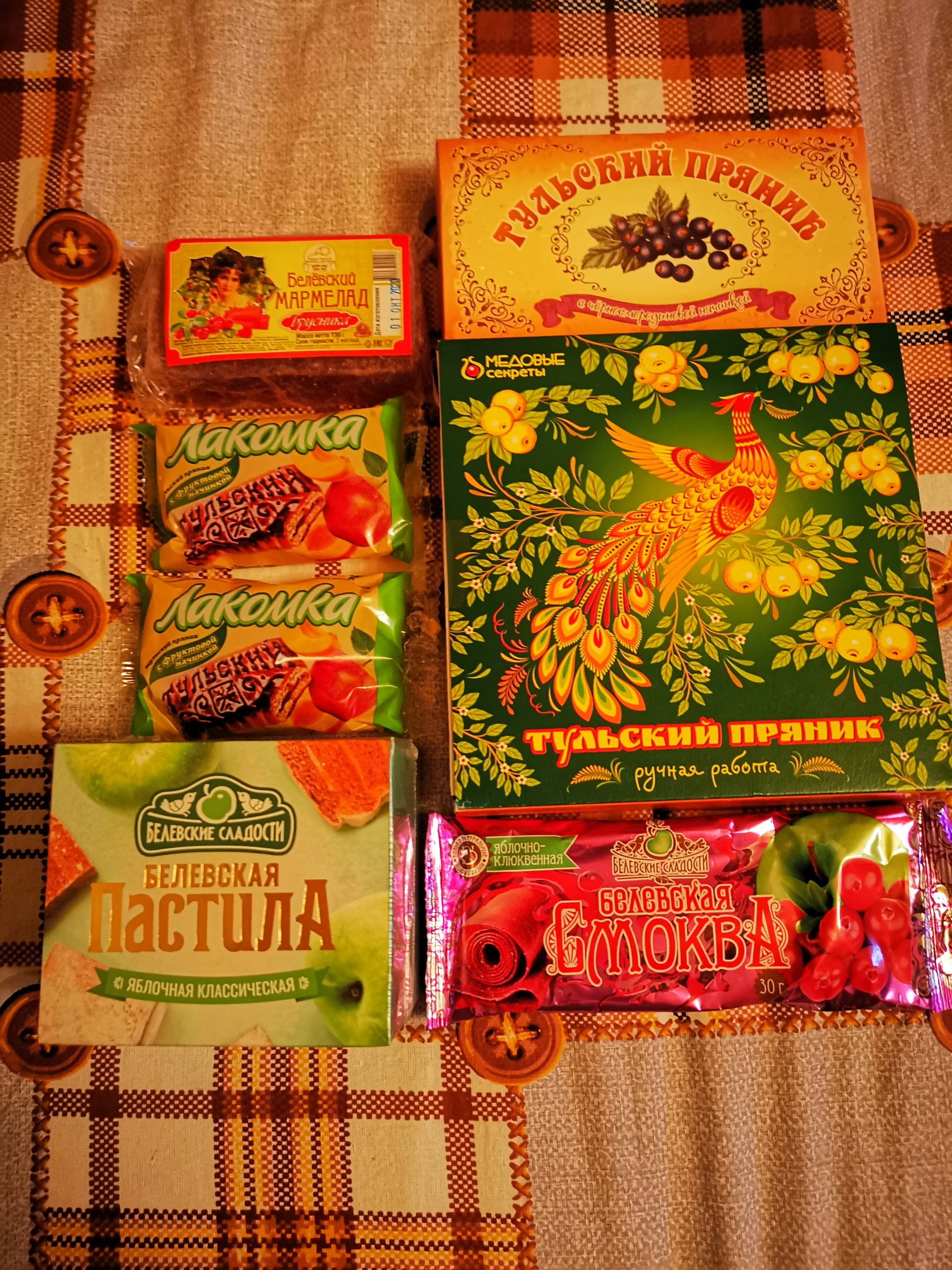 Вот и вкусная часть подарка, состоящая из блёвских пастилы, смоквы, мармелада и тульских пряников: