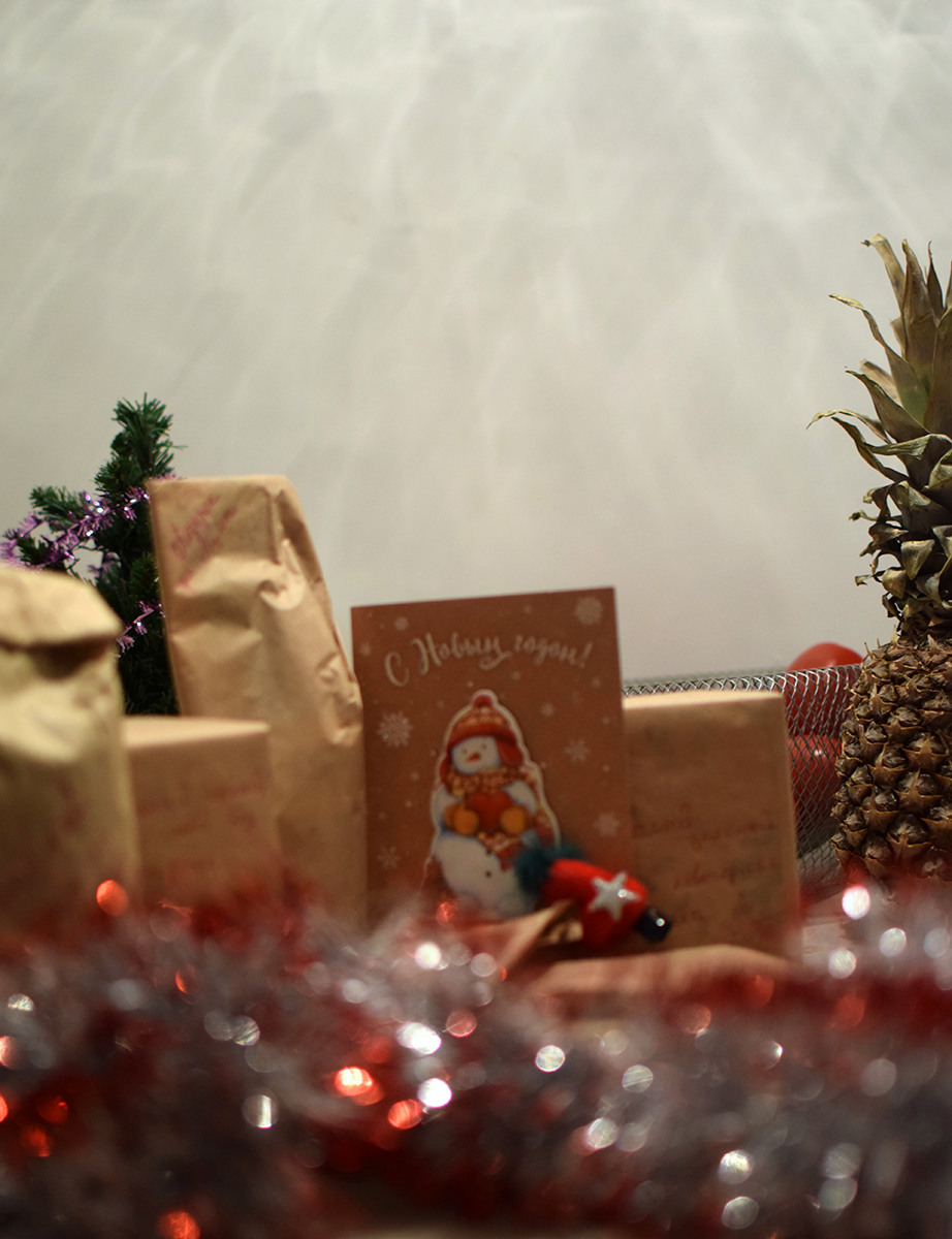 Каждый предмет завернут в крафтовую бумагу и снабжен пожеланиями ;)