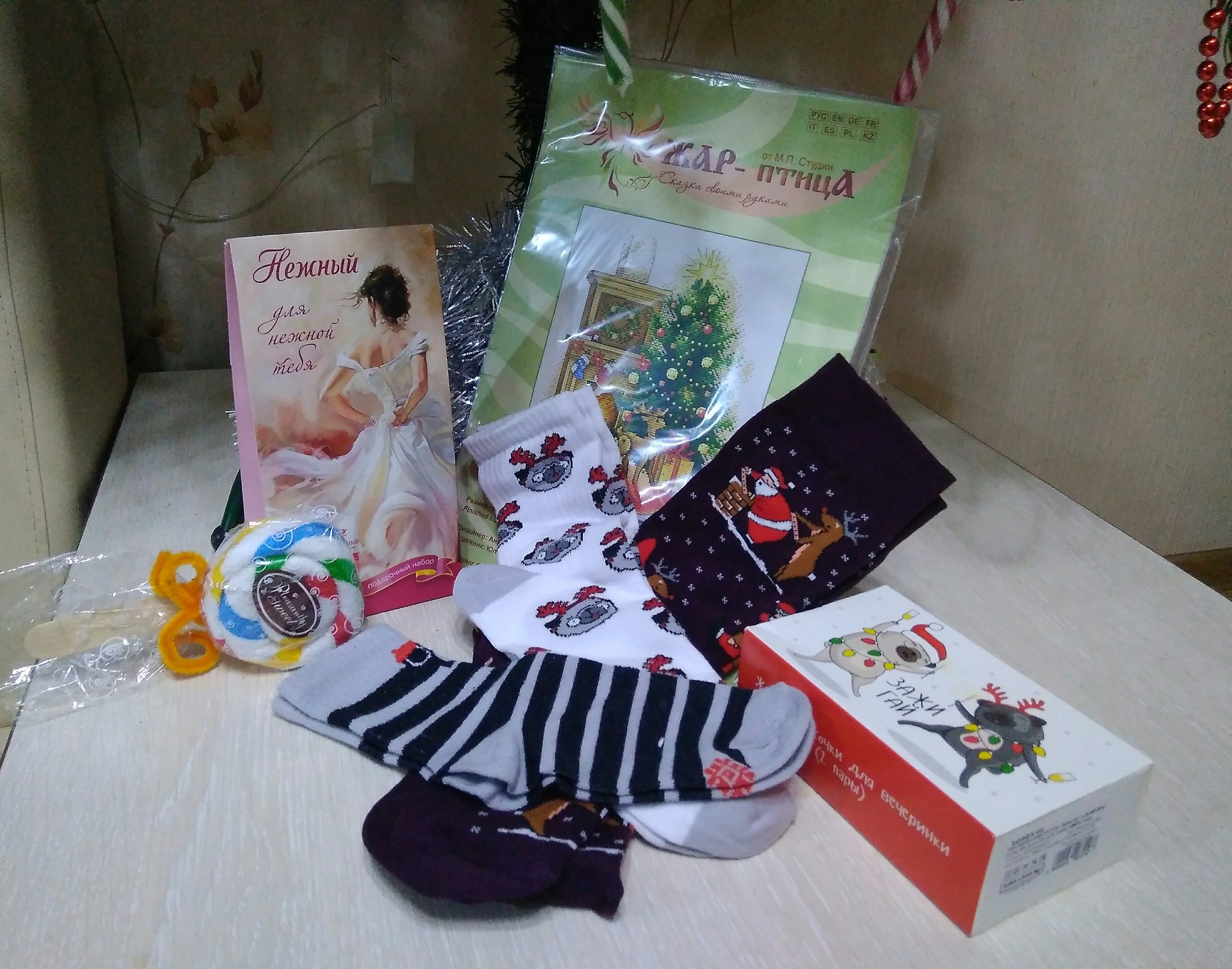 Носочки для меня, мужа и дочки, Байкальская нерпа, которую тут же утащили играть, красивейший набор для вышивания, будет чем заняться в новогодние праздники)