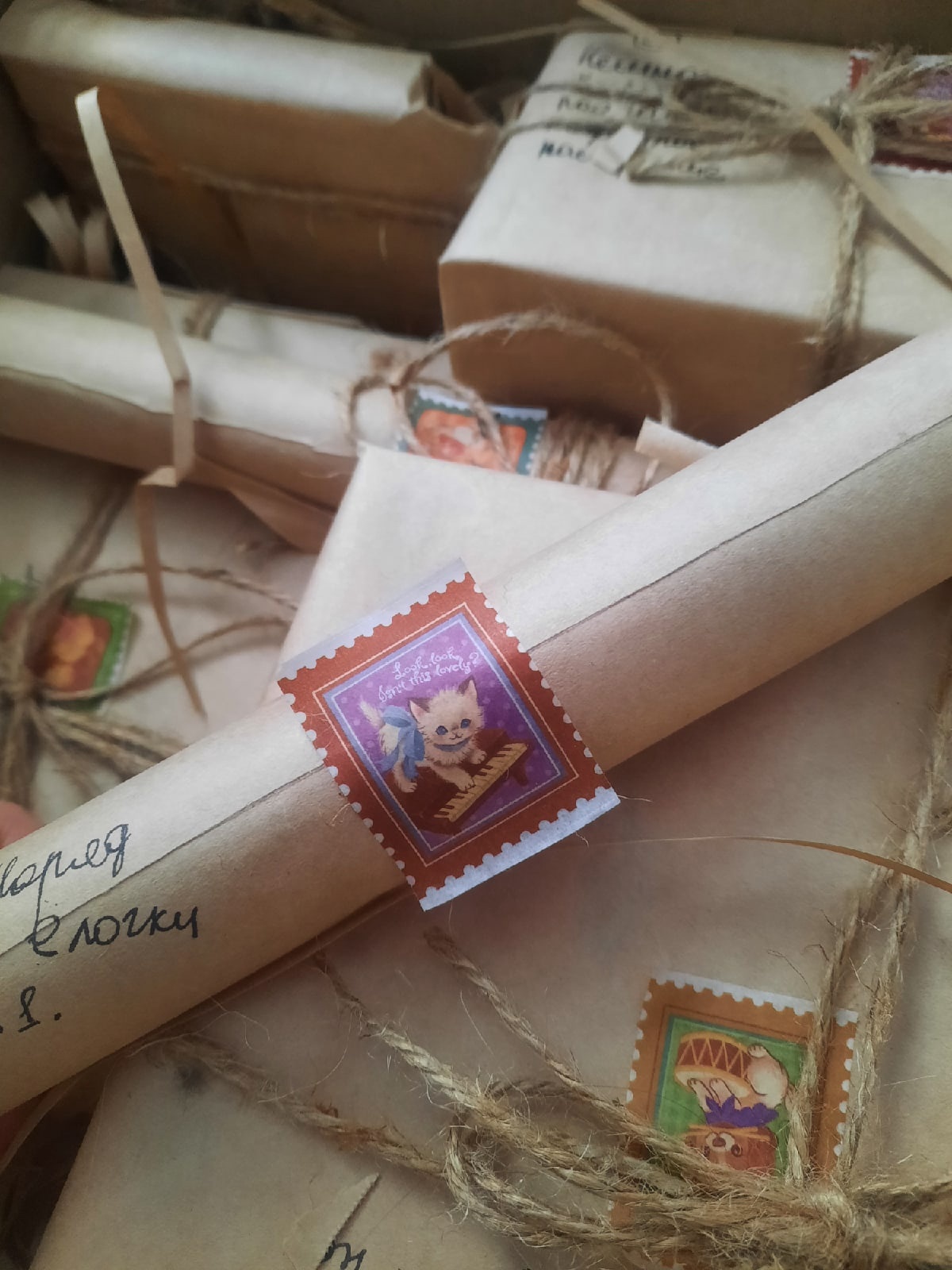 В коробке куча красиво и качественно упакованных подарочков) На каждом свёртке подпись, наклейка марка с милым животным, бантик - открывать такие подарки одно удовольствие!)