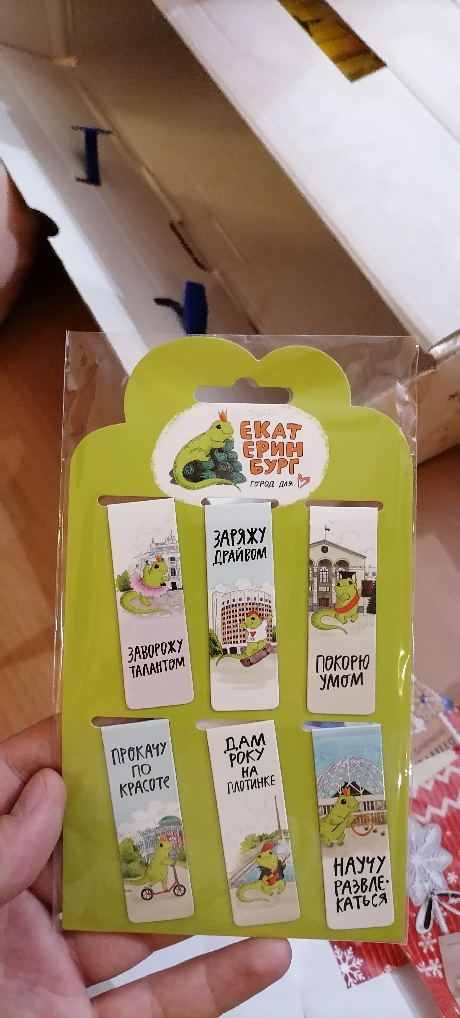 Следующей по списку, но не по значимости, стала очередная новогодняя упаковка, но мне надоело выкладывать однотипные фото с обложками, смотрите сразу на товар. Великолепные магнитные закладки, очуметь! Никогда у меня не было закладок, потому как залпом дочитываю книги, но теперь будет повод, к себе на работу брать и закладывать учебники и рецептурные справочники.