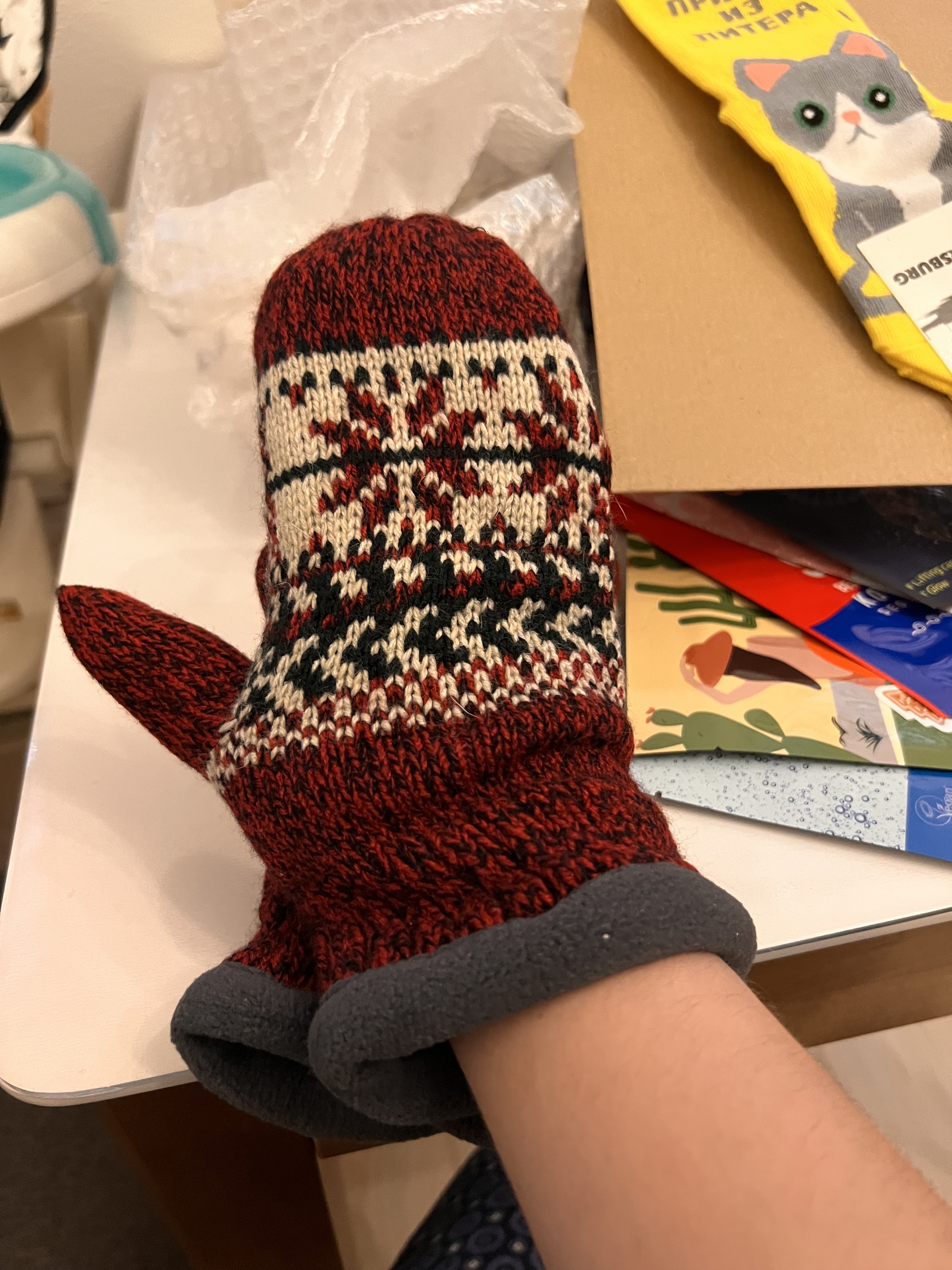 Теплые варежки пришлись по размеру.