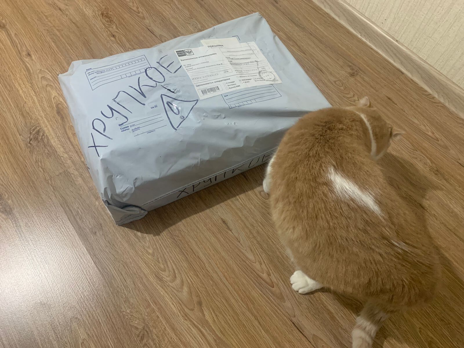 Вот я и дождался свей посылочки от тайного деда из Раменского. Спустя 3 часа после смс от почты России я уже стою в очереди за посылкой с огромной надписью "ХРУПКОЕ".