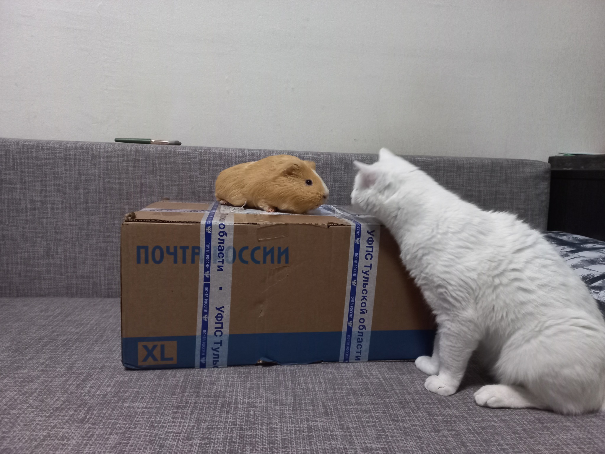 Всем привет!Вот и ко мне приехало новогоднее чудо!весом 4,3!!!кг.Учитывая размер коробки инспектировали полным составом .
