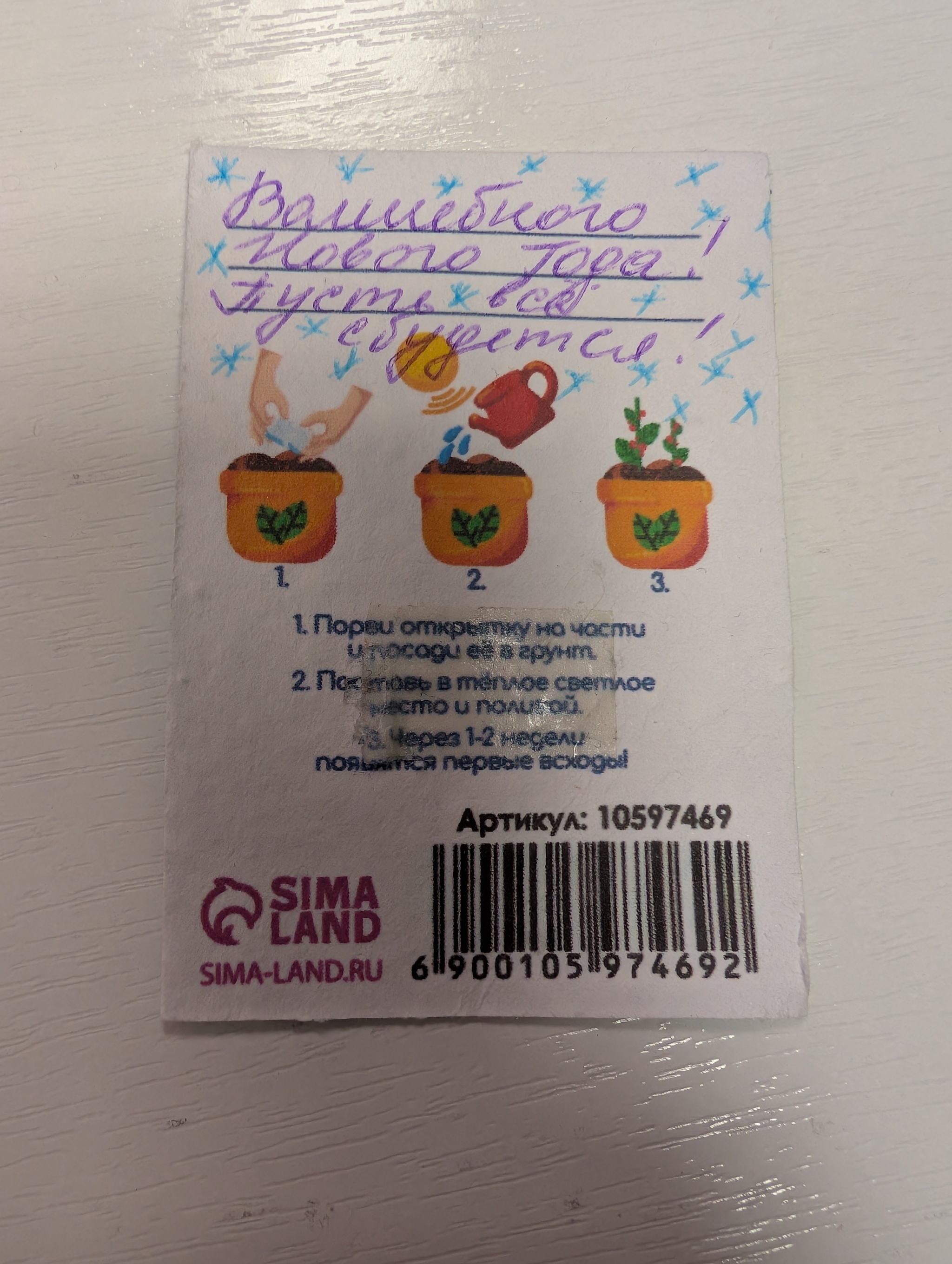 5. Милая открытка. Открытка оказалась необычной: внутри спрятаны семена. Надо разорвать, посадить в землю, поливать и ждать всходов. Интересный и нестандартный подарок.