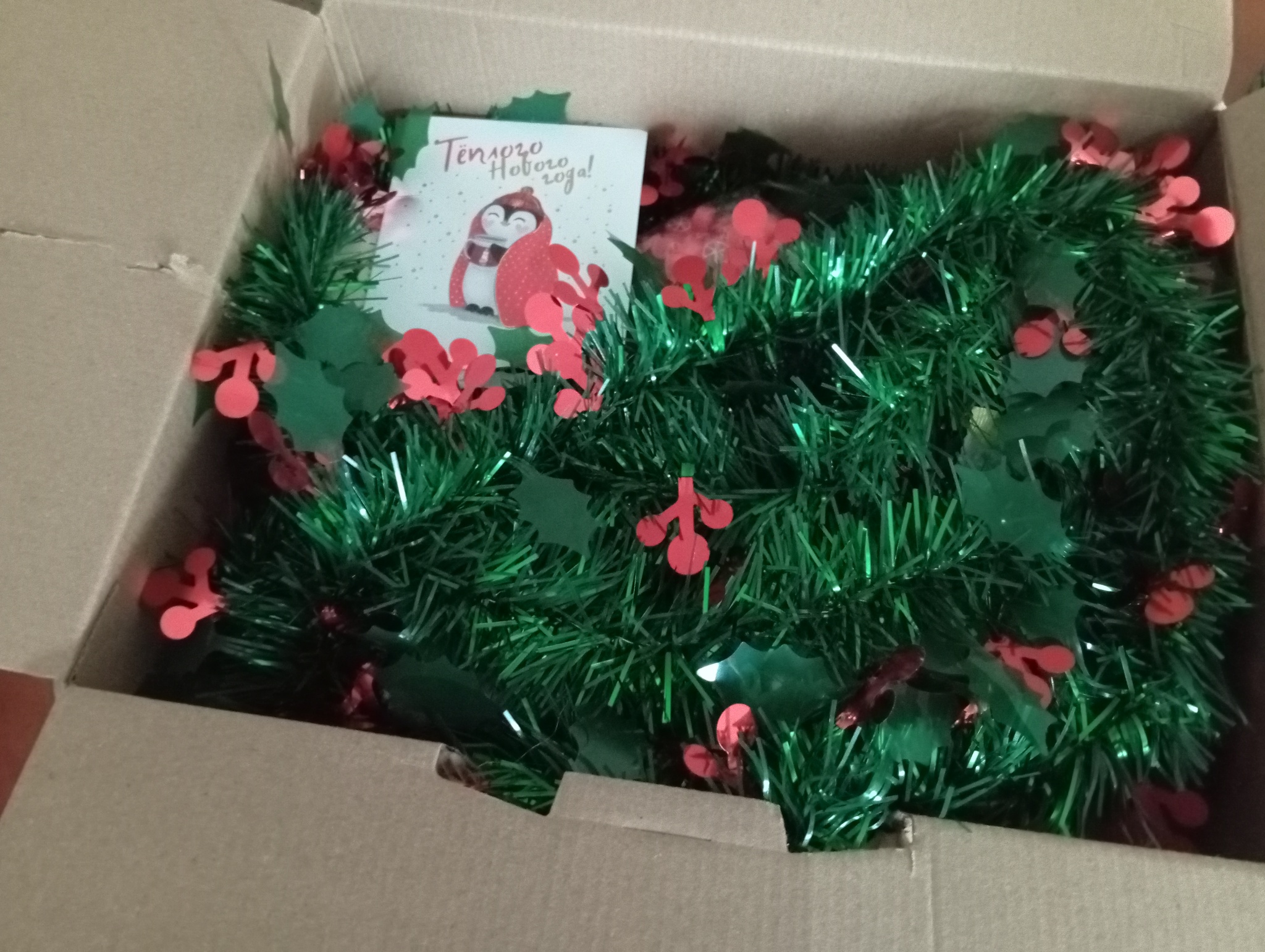 В этом году свою посылку получил позже, так как мы уезжали из города. Посылка пришла из города Северск Томской области. Моя жена родилась в этом городе, поэтому ждали этот подарок особенно трепетно.