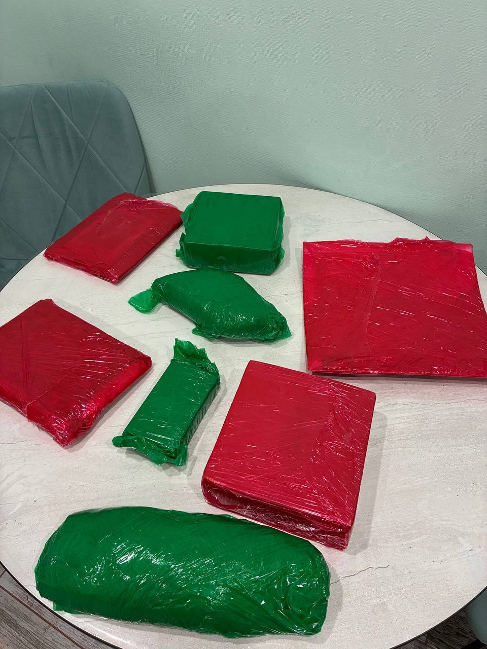 Новогодние подарки в ярких красных и зелёных упаковках и это создаёт праздничное настроение! Хоу-хоу!