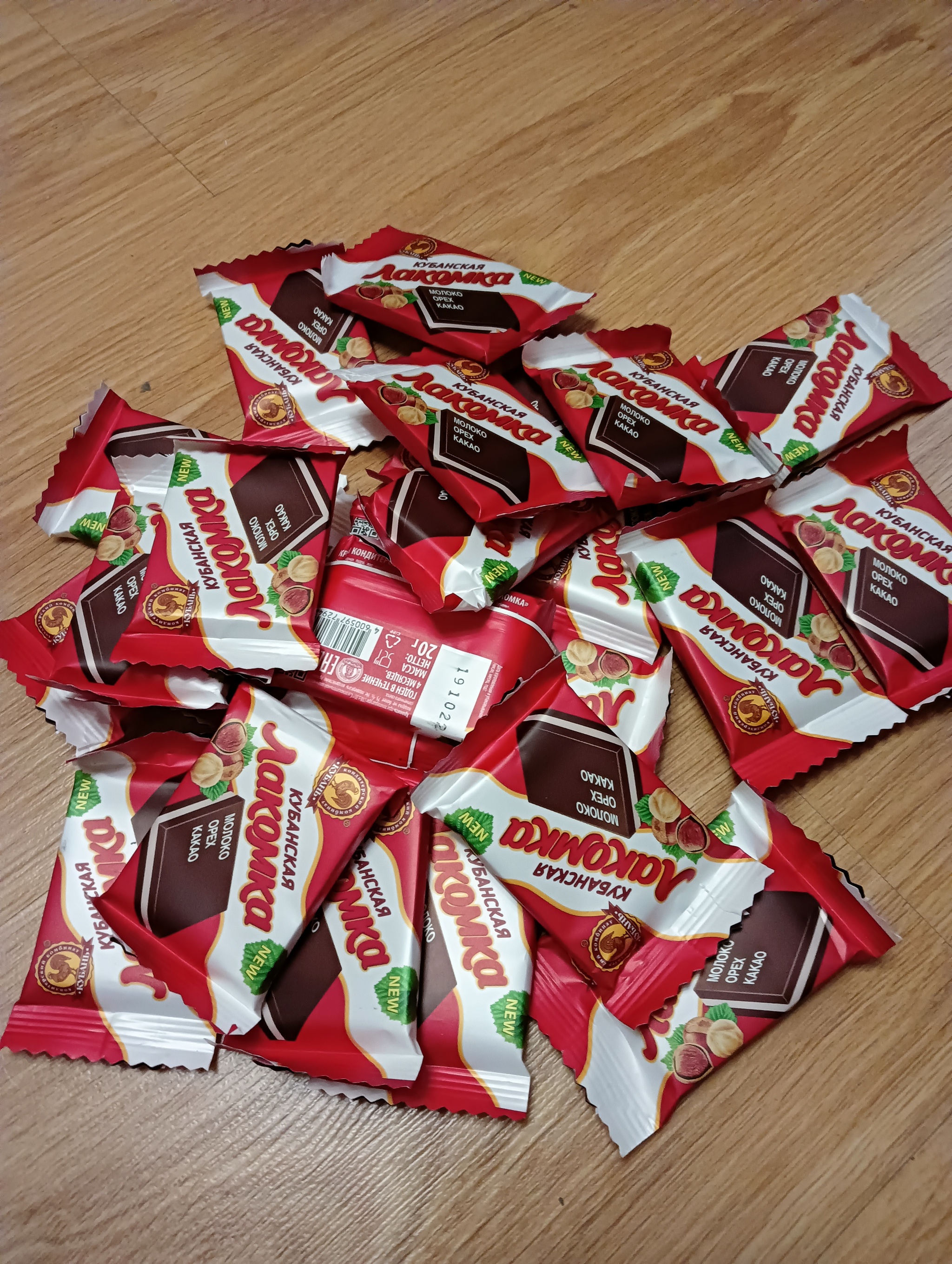 Мишура скрывала от меня что-то вкусно пахнущее корицей и что-то тяжёлое и бьющееся, за которое так волновалась моя Снегурочка. Поэтому её мы отложили в сторону и полезли дальше. По одной штуке я вынимала настоящий кубанский гостинец- Кубанская Лакомка(не конфета между прочим, а настоящий твёрдый кондитерский крем!). Вкус знакомый с детства.