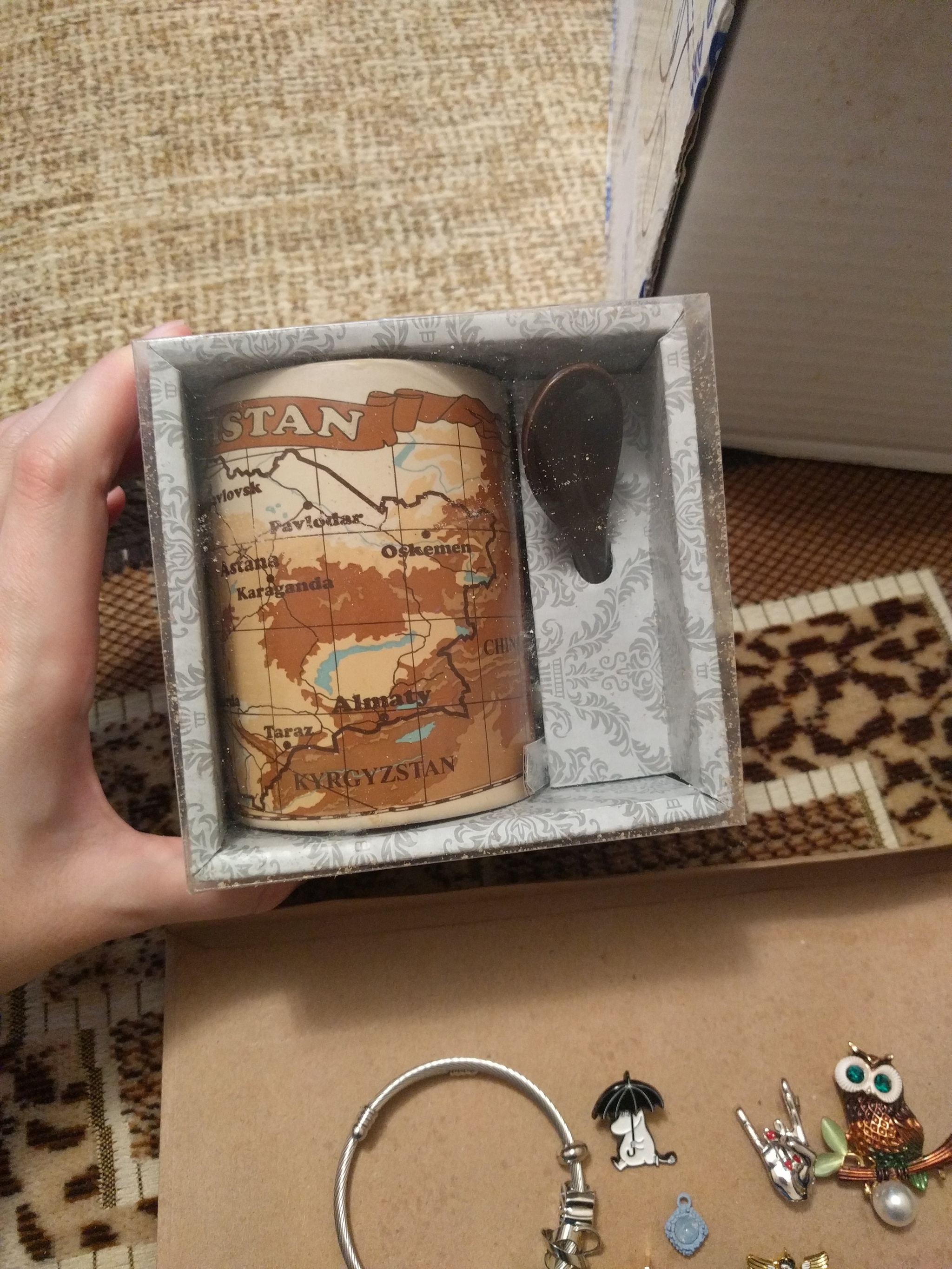 Очень нравится цветовая гамма кружки и сама карта. Будет напоминать мне, где живёт мой Санта. С моим топографическим кретинизмом это полезно :) А еще ложечка вставляется в ручку.