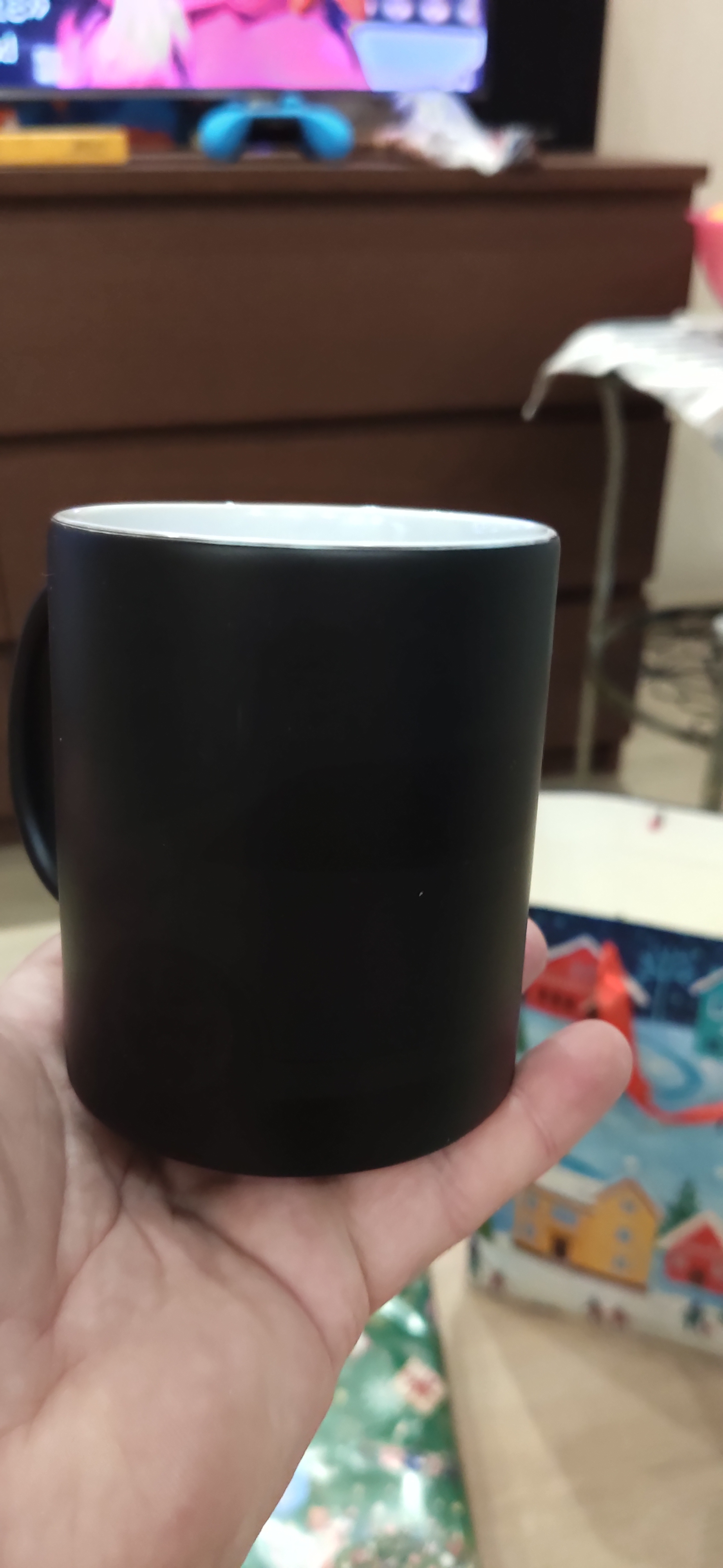 К конфетам прилагалась кружка. На первый взгляд, просто черная...