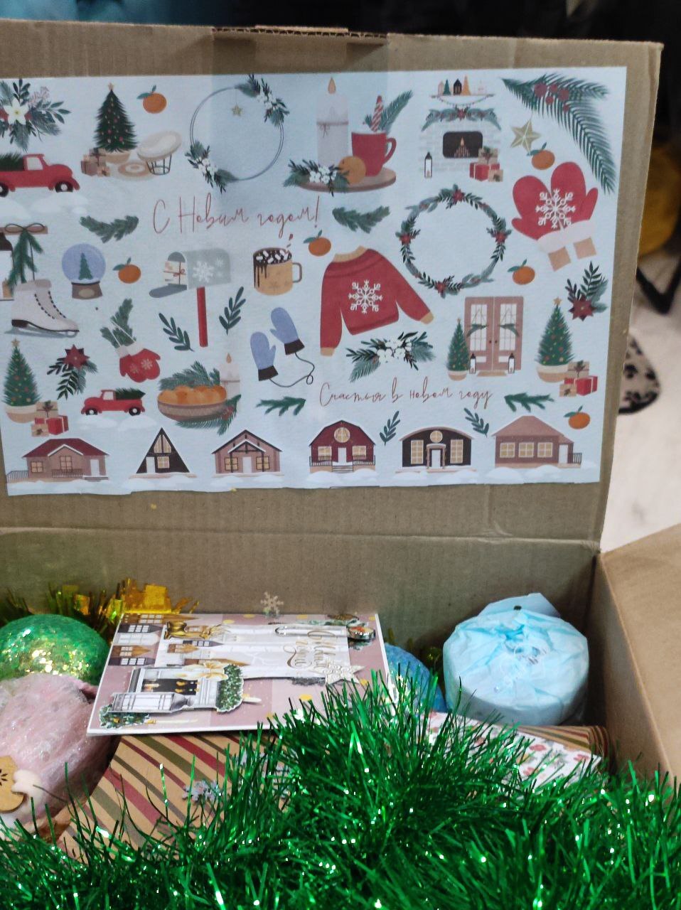 Красивые елочные блестящие игрушки, свечка ручной работы даже пережила транспортировку) Еще на фото не попала куча девчачьих блёсточек для лица и тела, это попадание 100000 из 100!