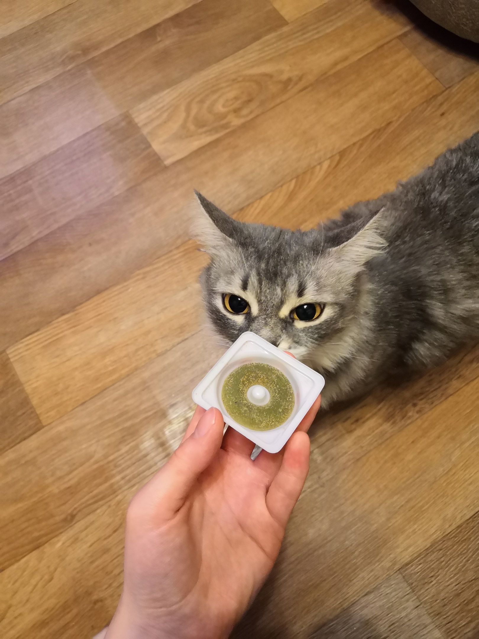 Затем увидела любимое лакомство моего кота. Тимон сейчас живет у бабушки, но его заменяет котопроверка от Фроси
