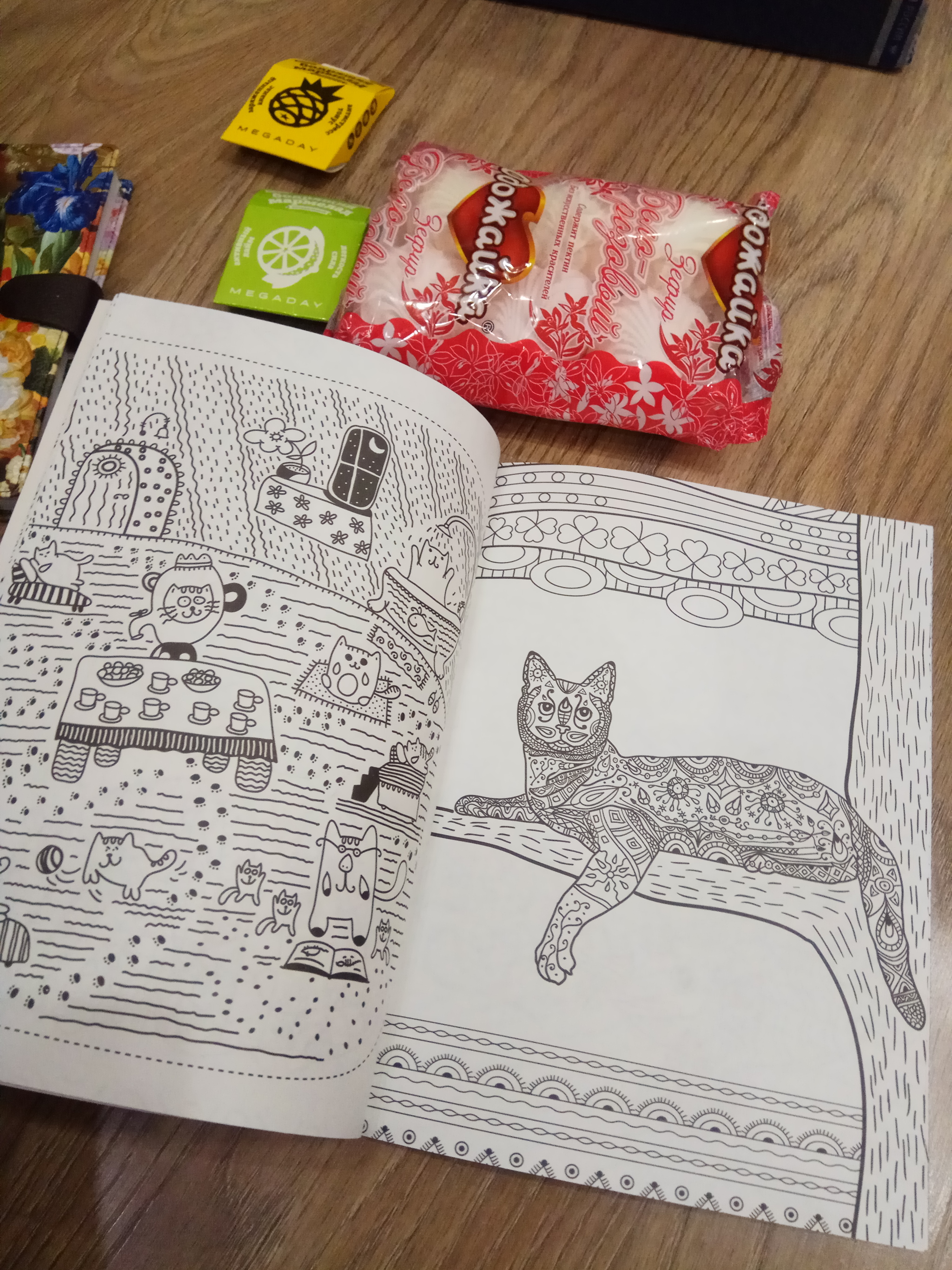 И в общей кучке не было еще одного подарка, потому что это был подарок для кота. Это был пакетик подушечек Dreams. Кот унюхал и пытался съесть пакет (он у меня вообще вечно голодный, а тут еще и вкусняшка)) В общем пришлось угостить немножко и быстренько убирать пачку подальше, остальное буду за хорошее поведение выдавать))))