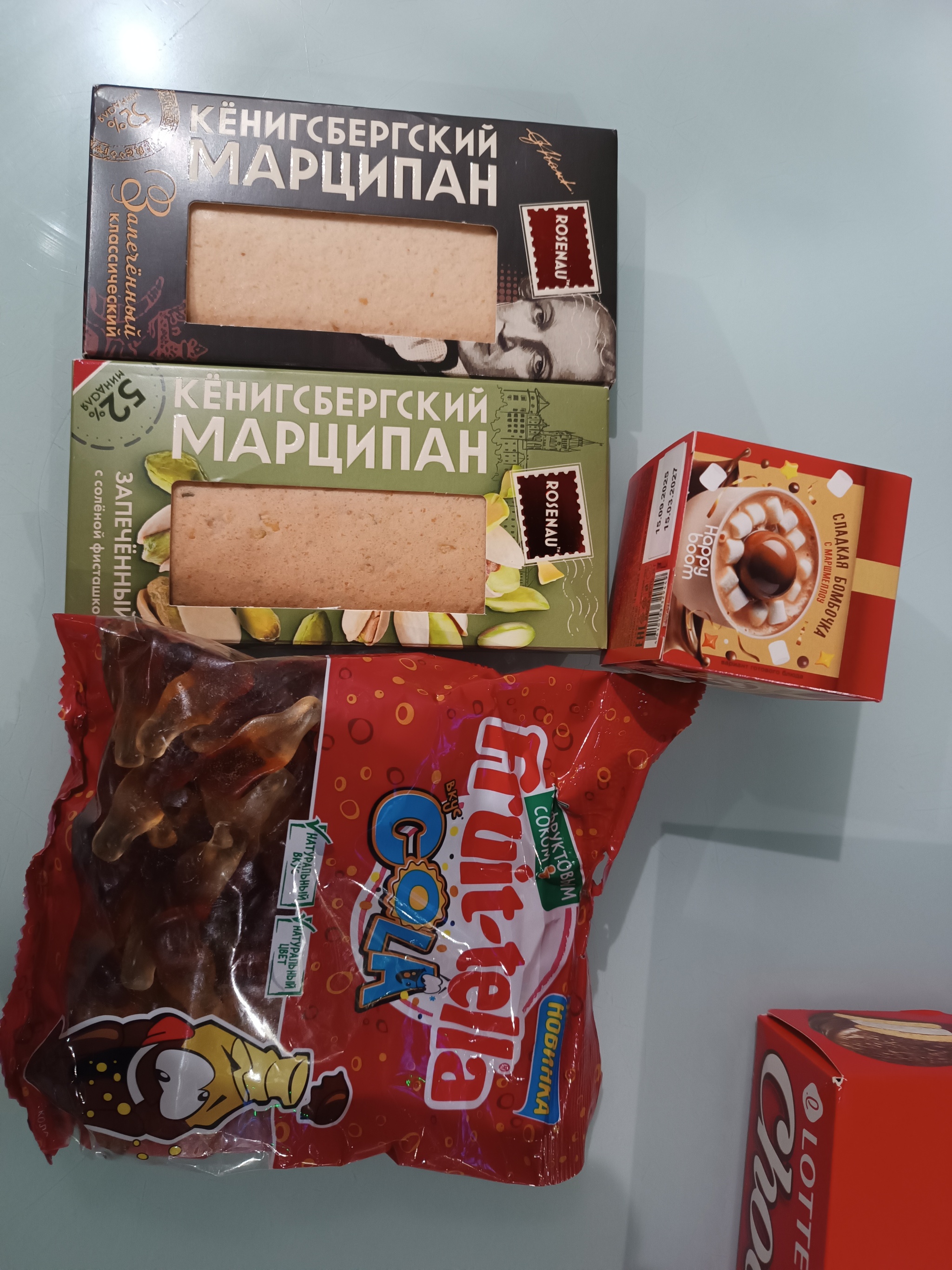 Когда получила уведомление , что посылка идёт из Калининграда, очень обрадовалась, так как в любимых продуктах был указан марципан. Анна, спасибо вам огромное ! Яркая, вкусная, радостная посылка.
