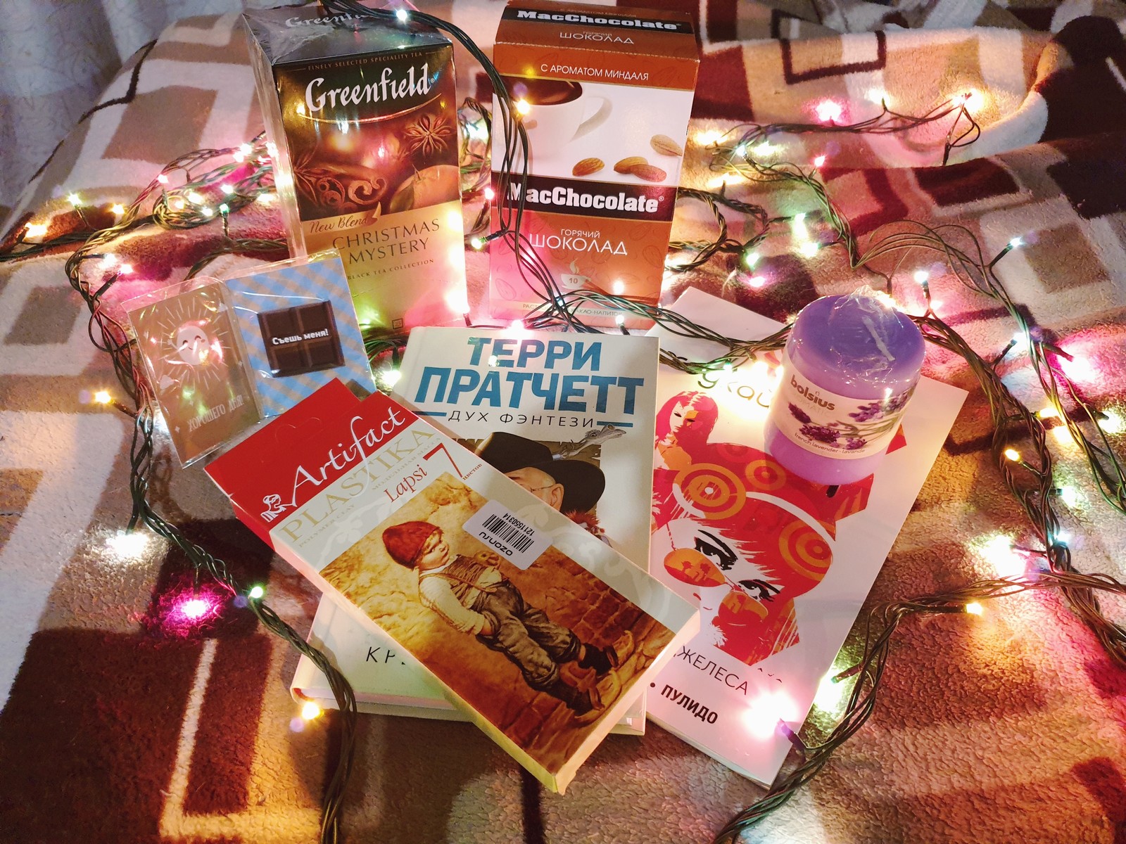 комикс про Хоукая, шикарную книгу о сэре Терри Пратчетте😍😍😍 а так же набор полимерной глины, так как я указала, что начинающий в этом деле, ну и конечно свеча с запахом Лаванды )