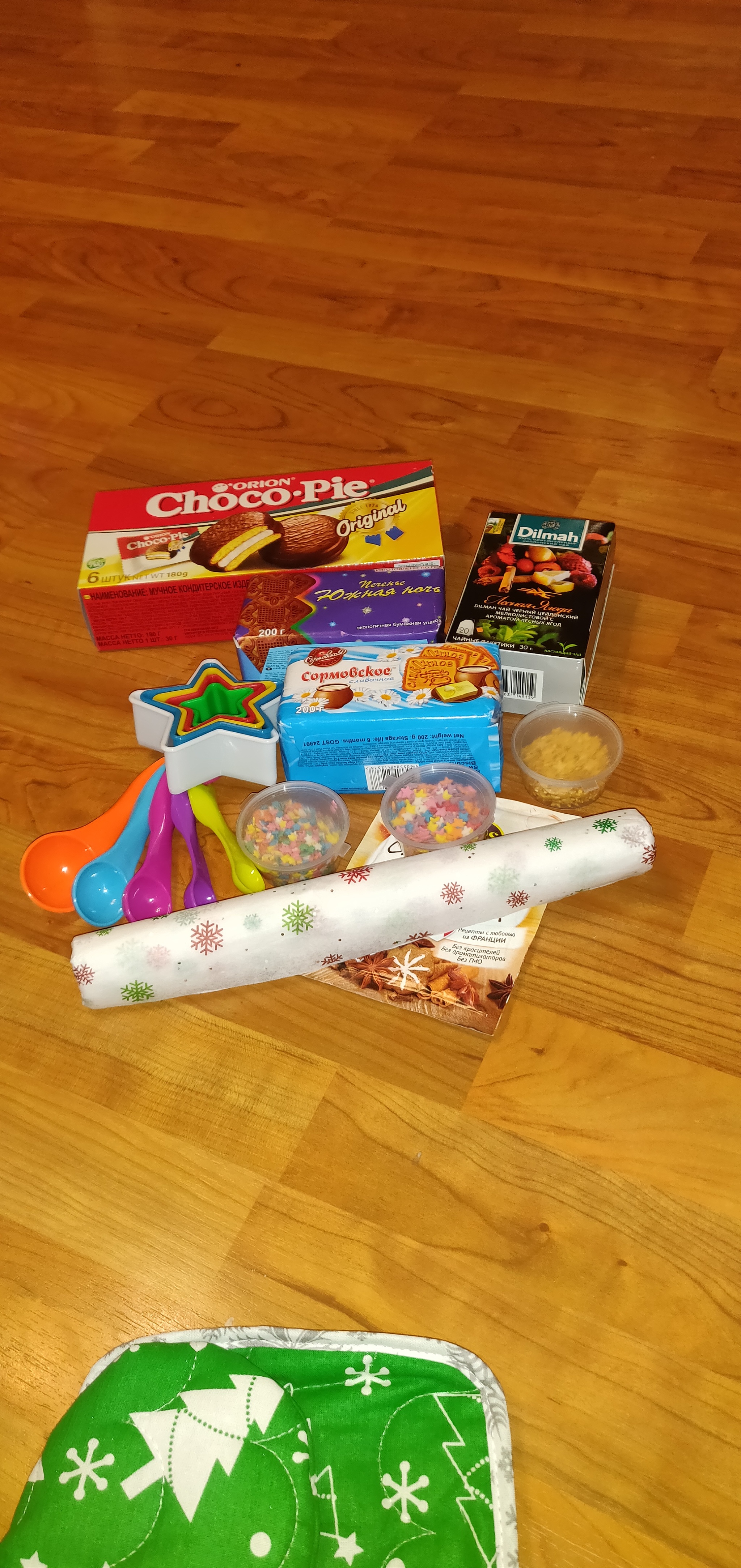 Ингридиенты для приготовления пряничков, а также вкусняшки.