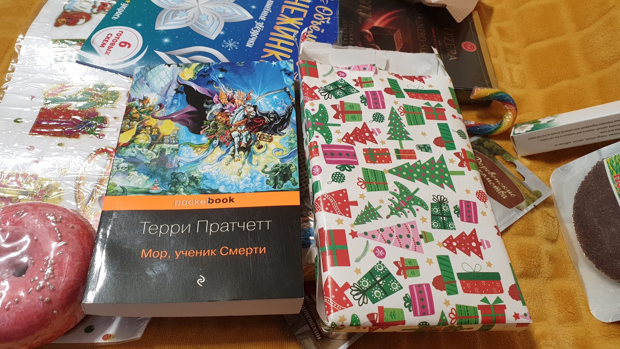 Что же скрывалось в подарочной упаковке? Мор, ученик Смерти. Обожаю Терри Пратчетта)