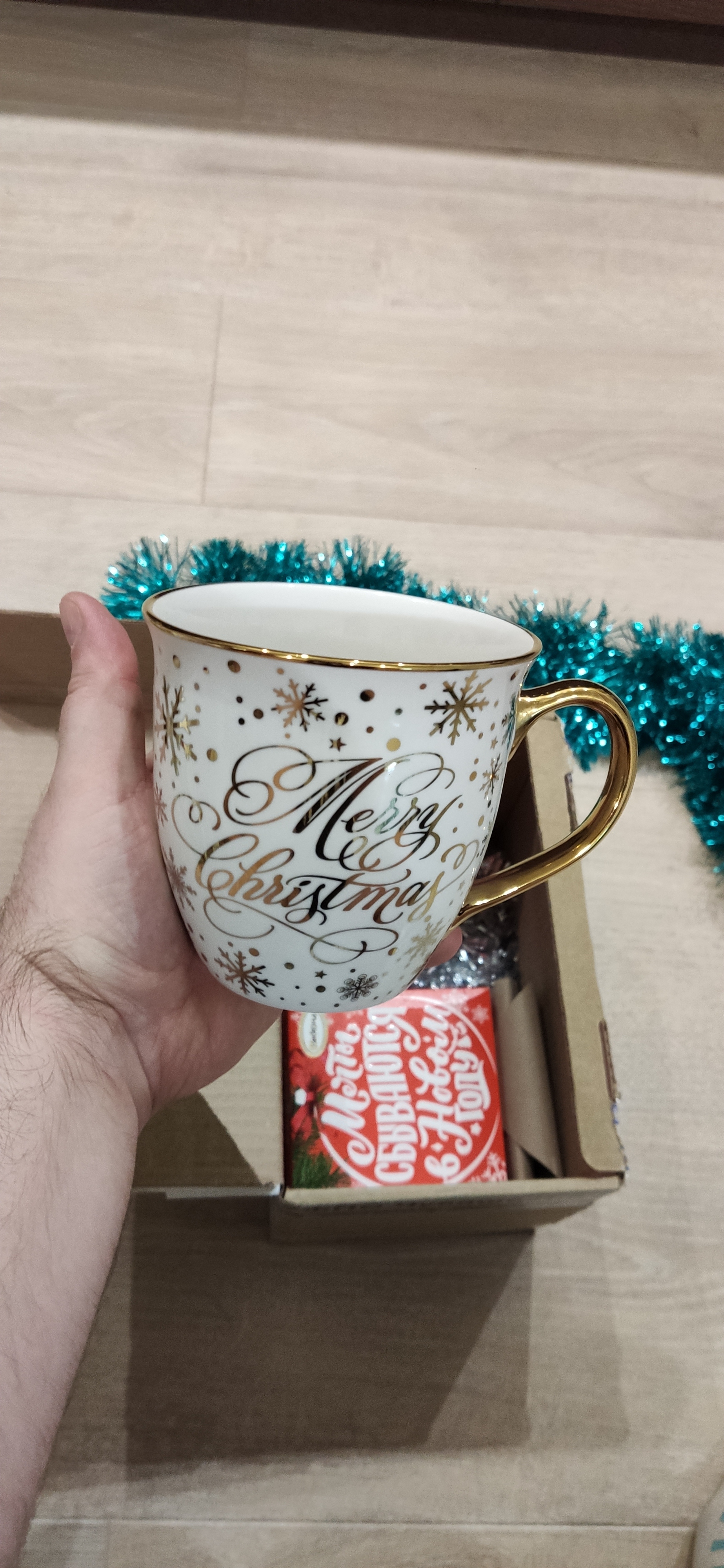 В подарке была красочная новогодняя открыта и письмо-пожелание, написанное от руки.