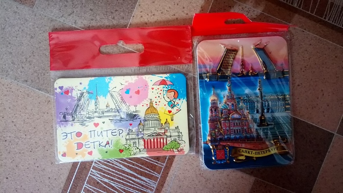 Конечно же не обошлось без символа города отправителя: магнитики, блокнотик и календарик