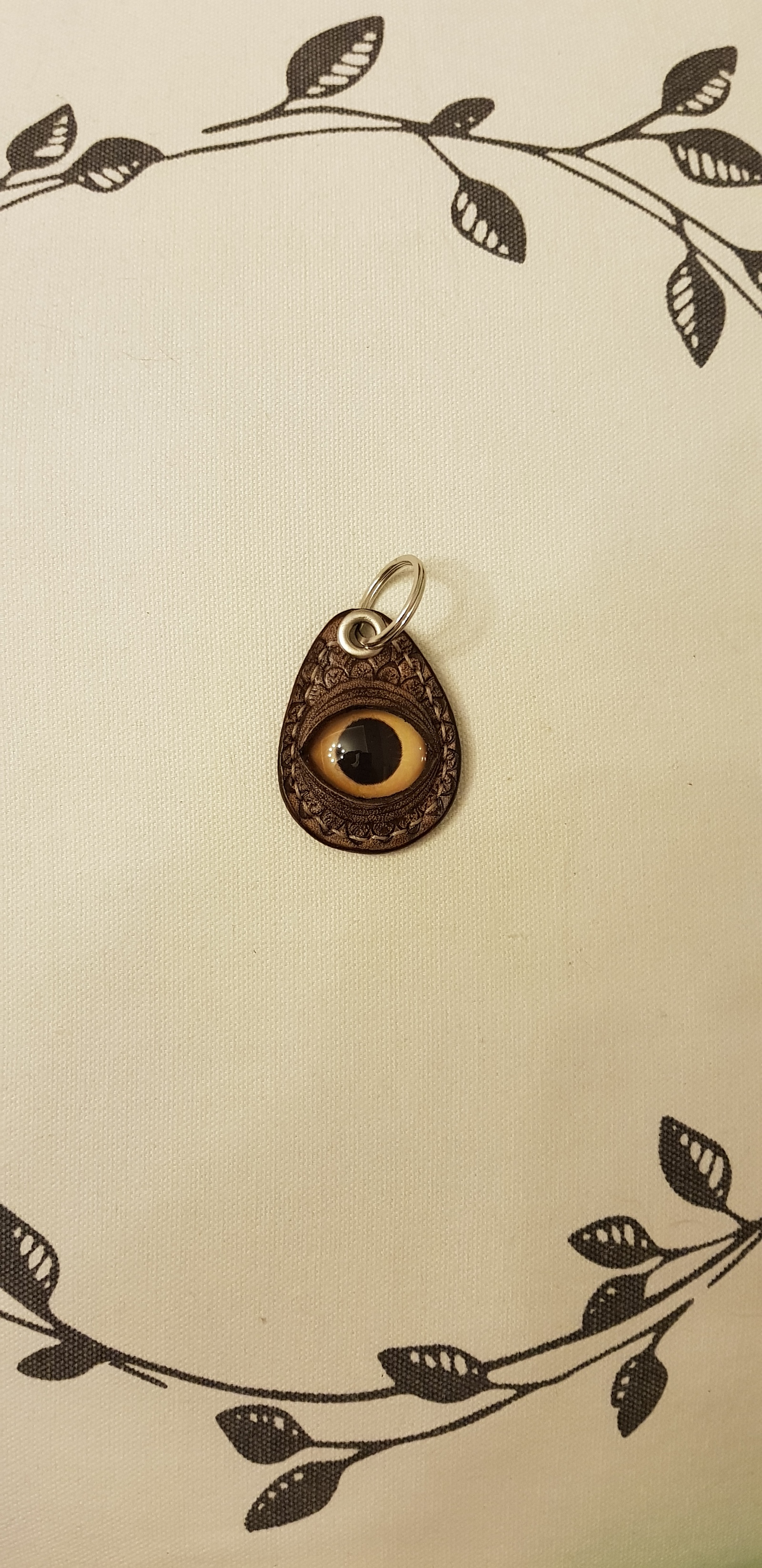 Пикатоварищи, я просмотрел её работы(она кожевенных дел мастер) и мне очень уж понравились брелоки в виде глаз драконов и иже с ними). Я не попросил этого, когда она предлагала, но, почему-то, до последнего надеялся их получить. Внутри стакана лежало несколько пакетов, а внутри этих пакетов лежали они: