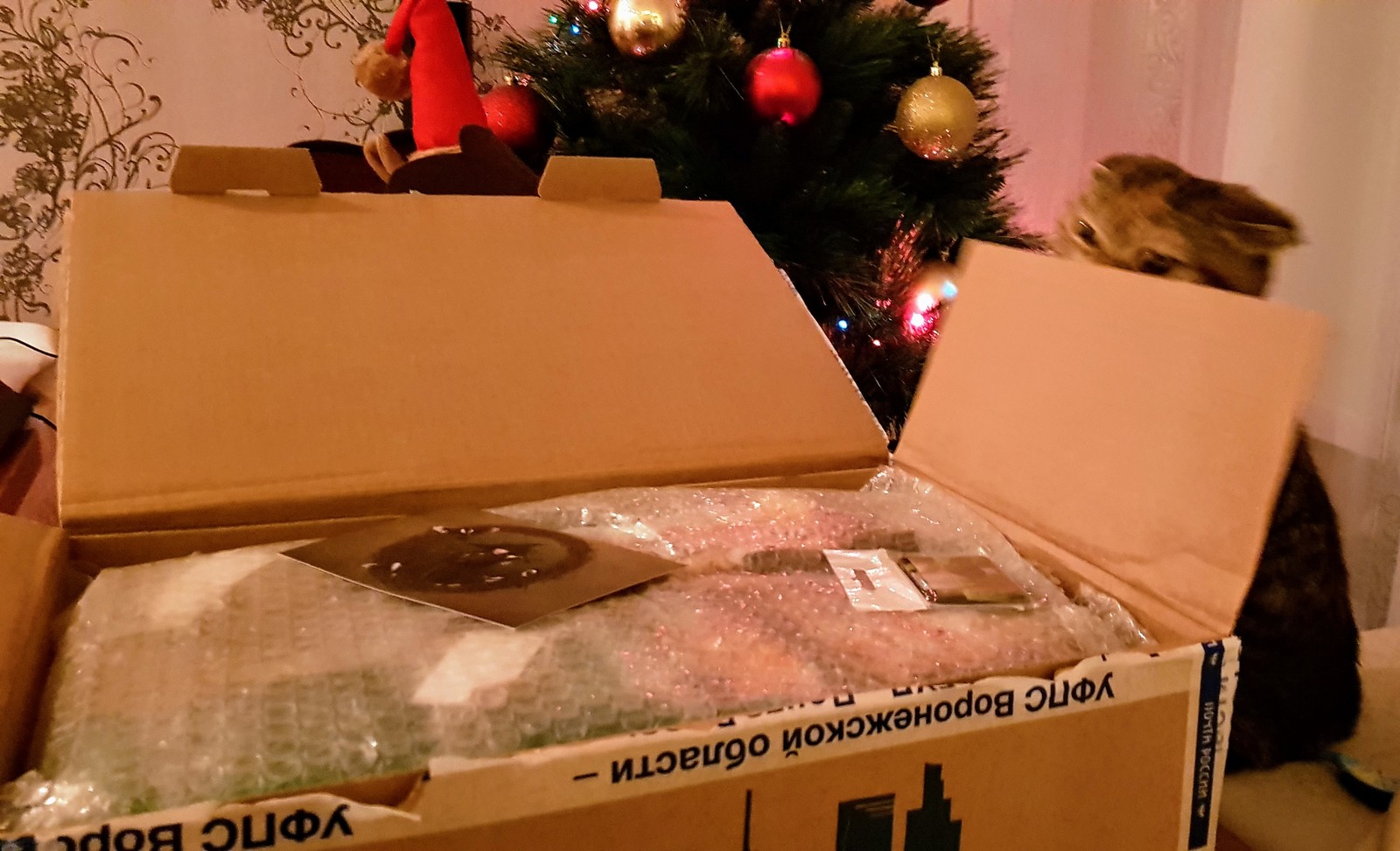 И вот пришло оповещение, почта, посылка, дом, распаковка. И вот: