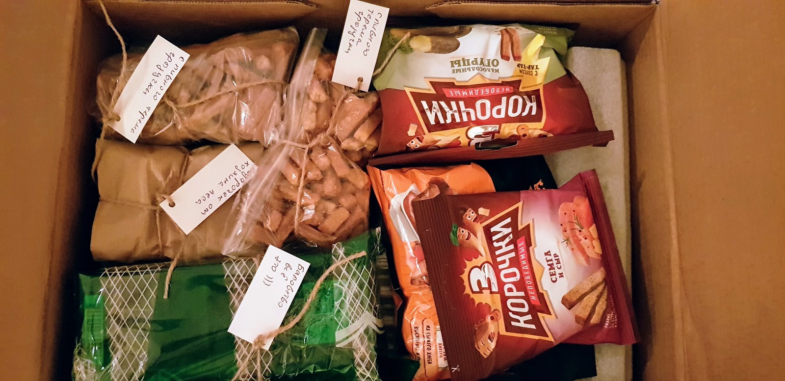Почти целиком. Жена схомячила одну конфетку. Сухари не очень хорошо видно, но они все сзади!