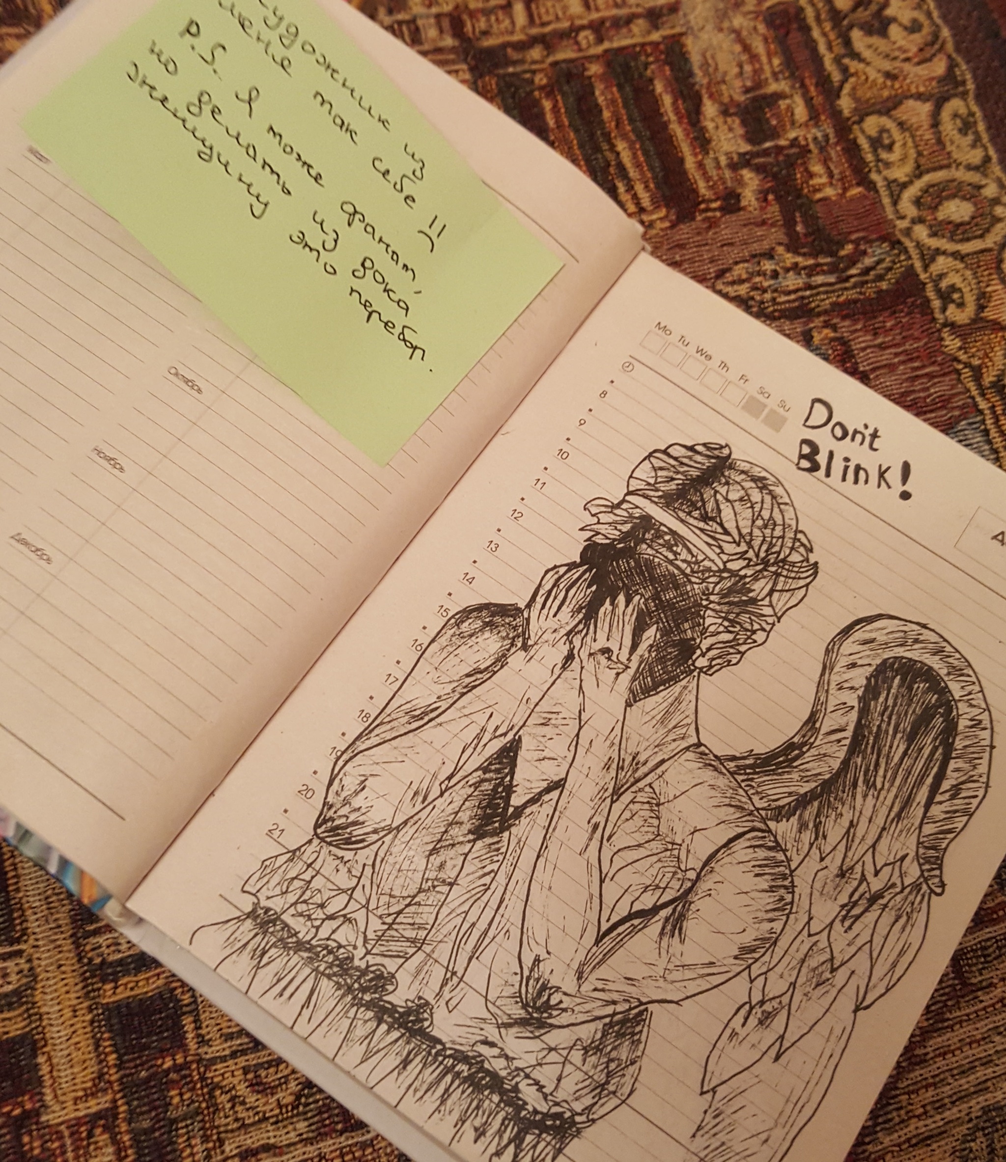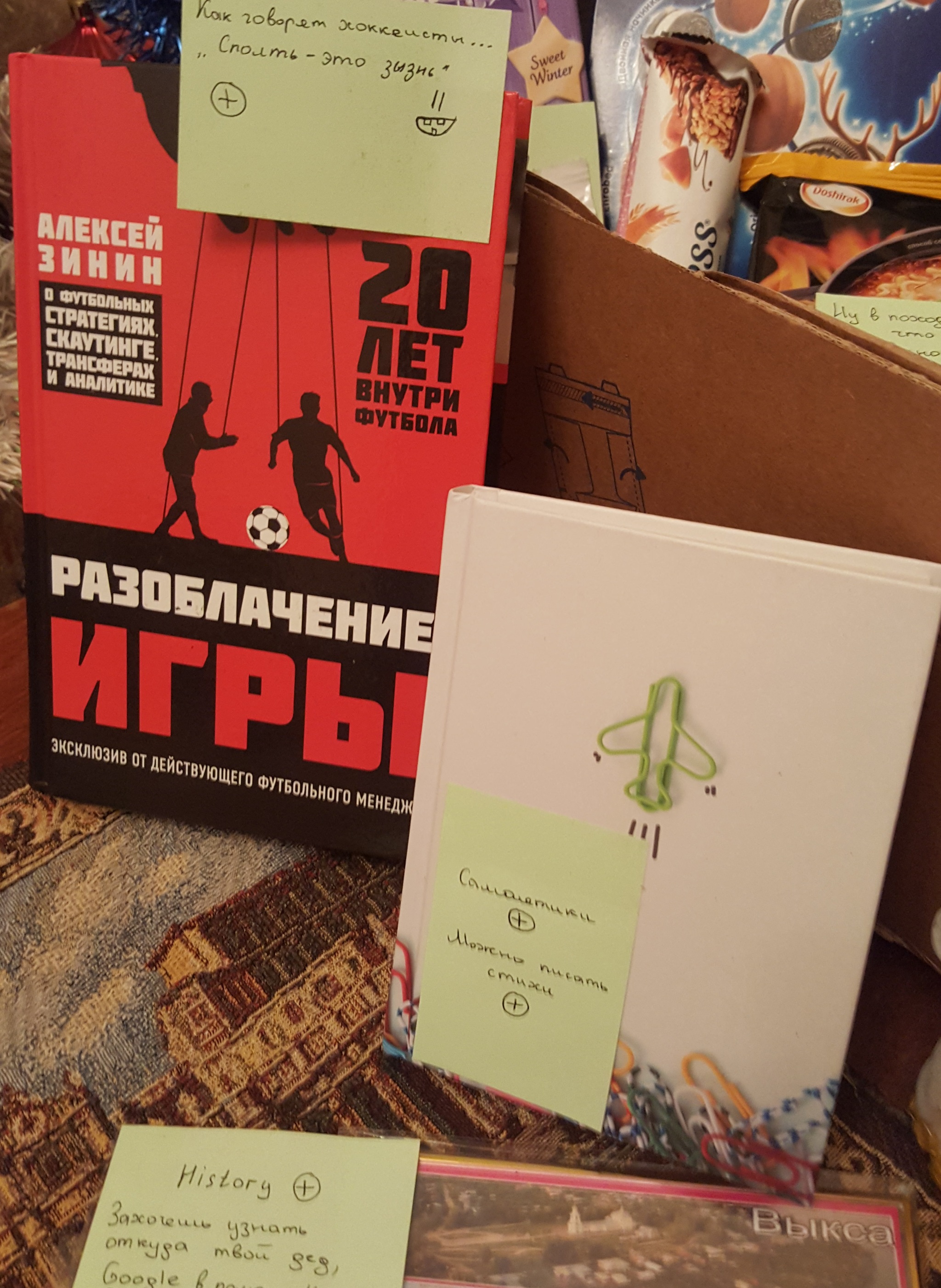 Спасибо тебе огромное за книгу по теме футбола. Эту я еще не читал, так что и тут все просто в тему! Отдельно восхитил маленький блокнотик справа, что ты мне подарил для написания туда стихотворений. Но более всего меня восхитили твои таланты к рисованию. И зря ты хаишь свой труд. Я так не смогу - зуб даю. Хотя в детсве рисовал неплохо покемонов (не лет эдак 19 назад) - недвано нашел свои рисунки в архивах семьи. I will not blink! И да, я согласен, что Джуди Уиттакер немного "не тянет" роль Доктора, хоть и старается!