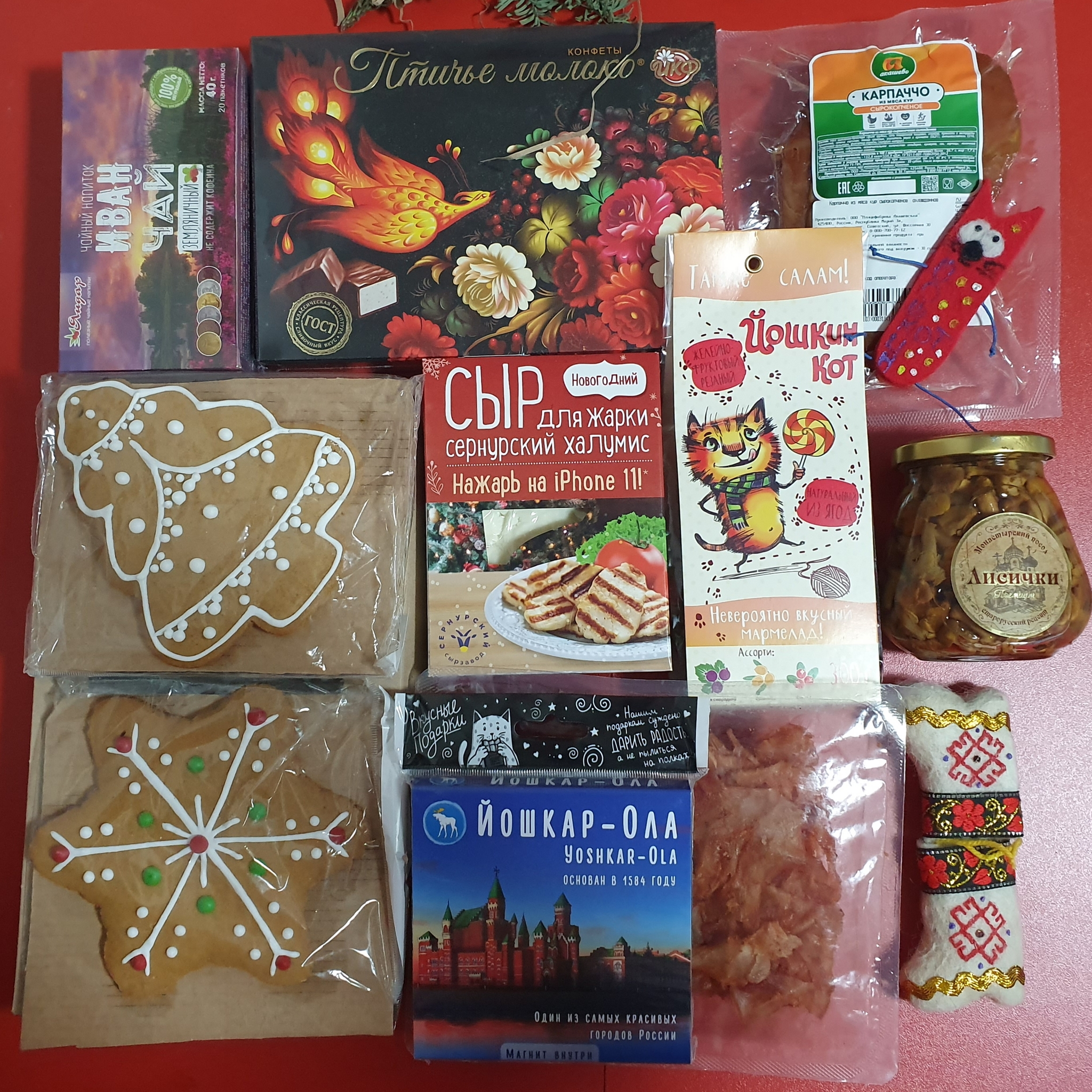 Внутри было много всяких вкусностей: конфетки, мармеладки, пряники, сыр, мясо и грибочки. Все местного производства родины Дедушки) Хотела все оставить на новогодний стол, но нет...