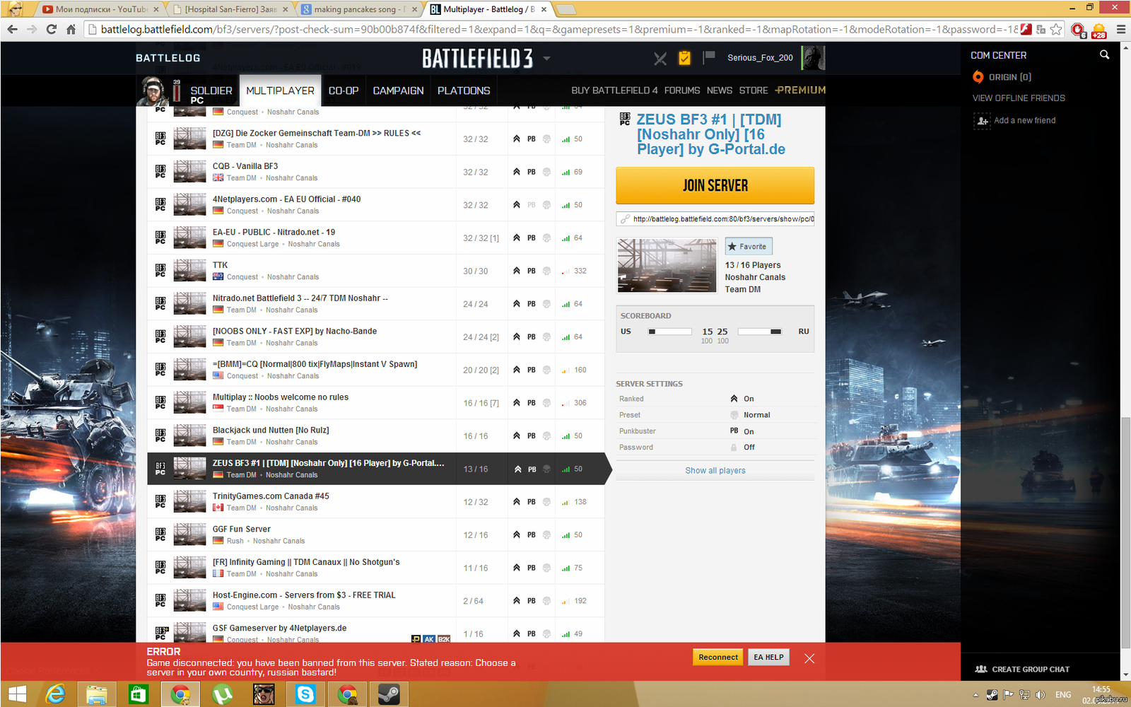 OnlyMrMad Админ-русофоб 11 лет назад Вы были забанены, причина: выбирай сервер своей страны, русский ублюдок Крым Battlefield 3