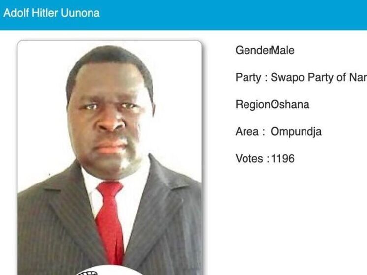 Адольф Гитлер идет на выборы. Нет, это не "старости", не параграф из учебника истории, а самые настоящие новости. Не из параллельной реальности и не из психушки. Из Африки. Точнее, из Намибии. Еще точнее - из округа Омпундья, расположенного на севере страны. Глава местного самоуправления, Адольф Гитлер Уунона, занимающий свой ответственный пост с 2004, намерен продлить возложенное на него бремя власти еще на один срок.