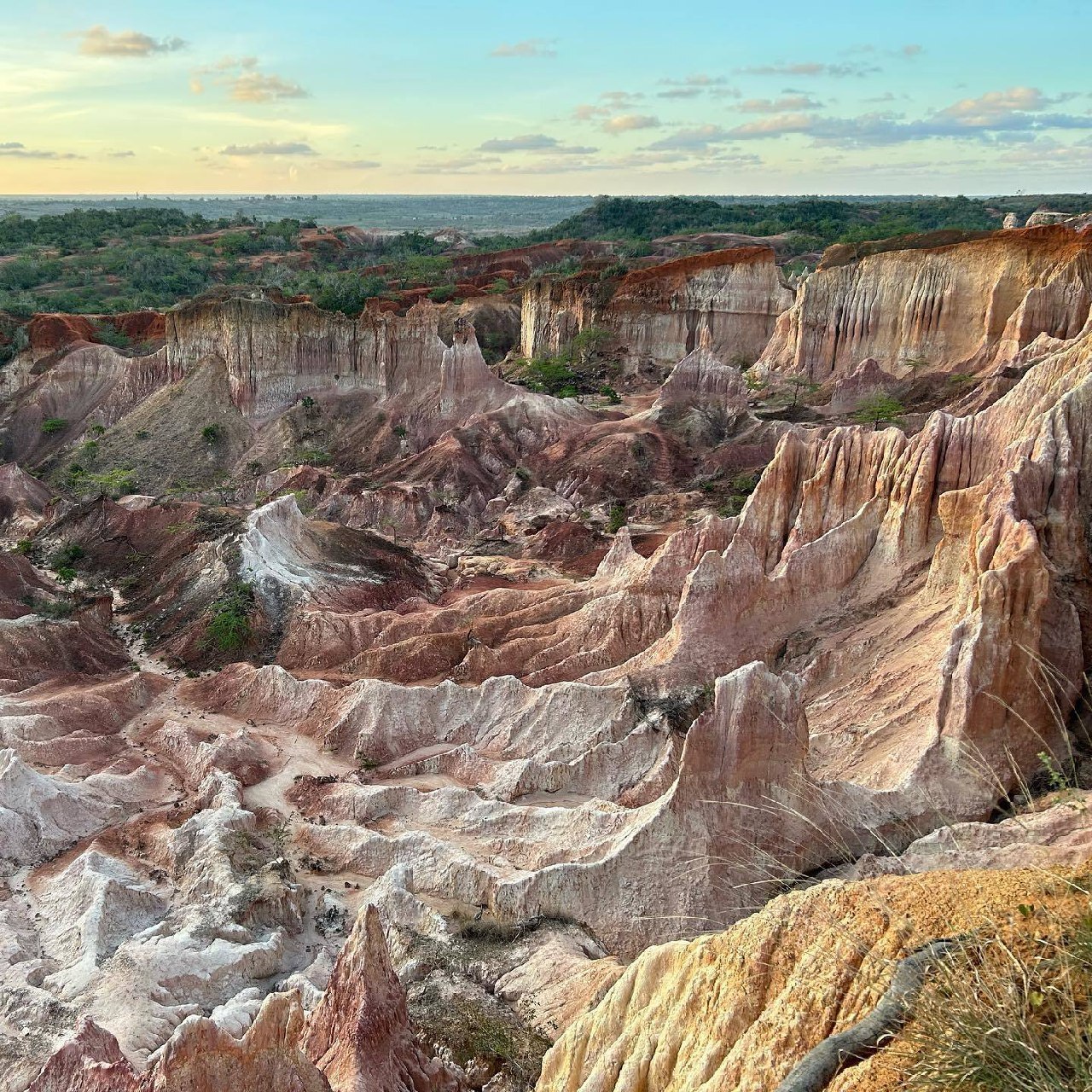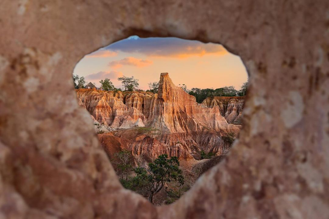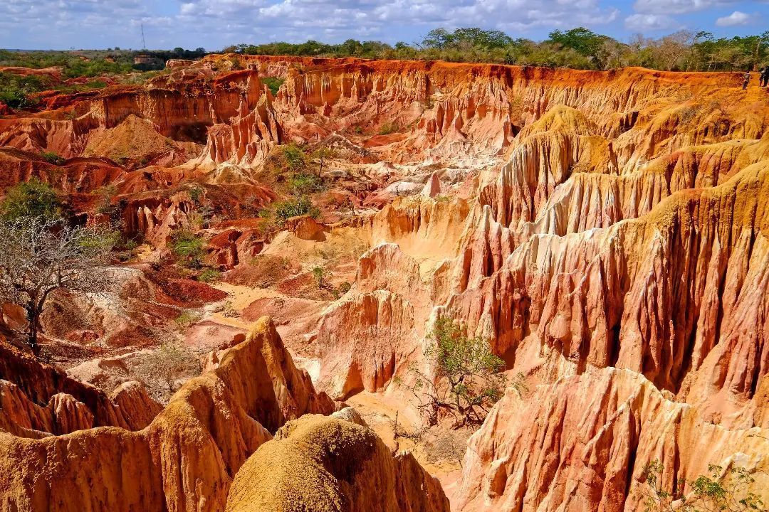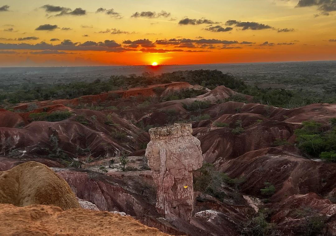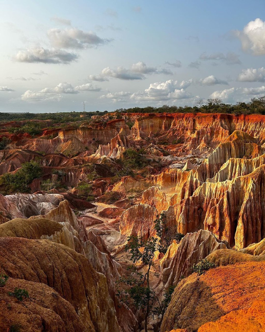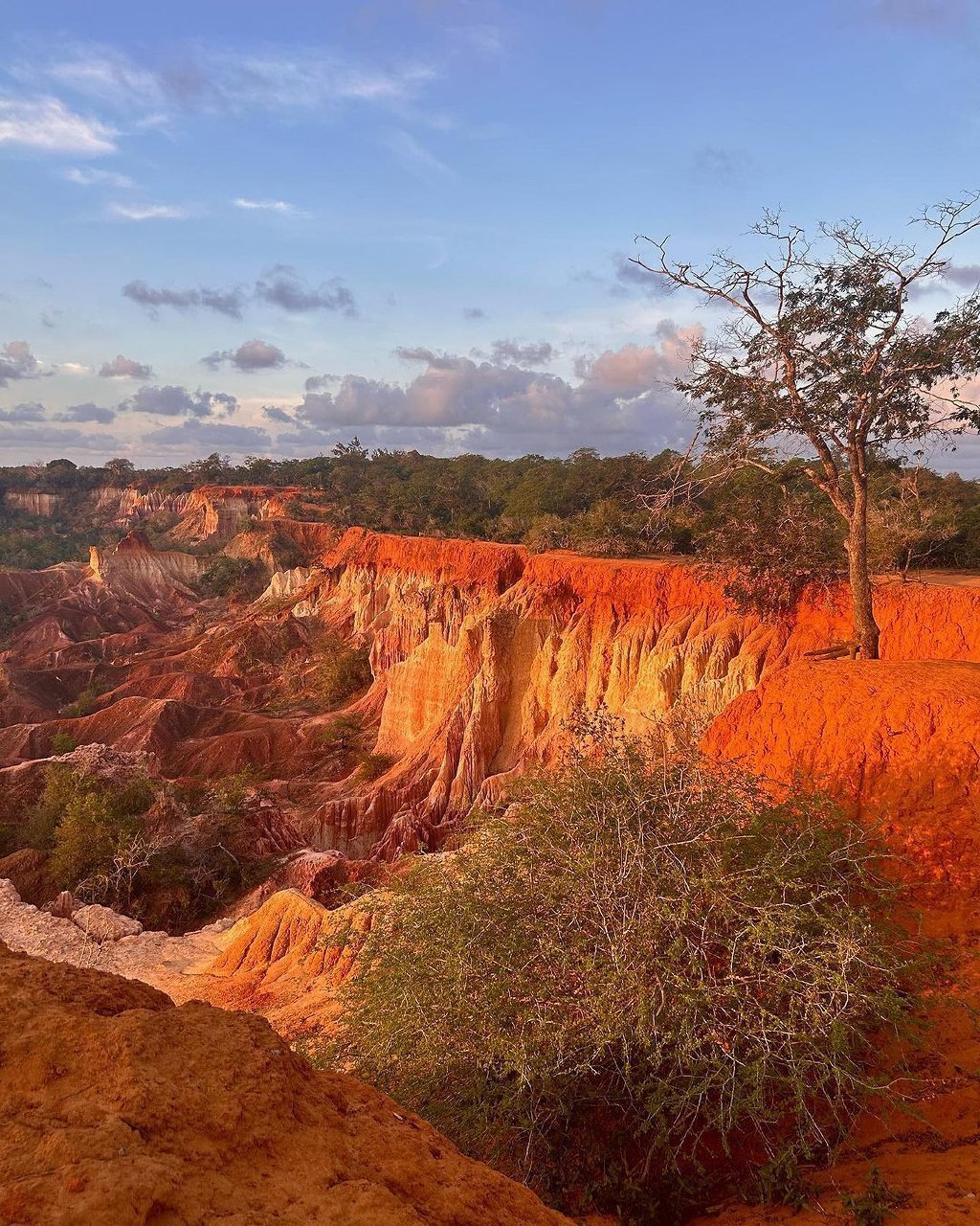 Адская кухня Марафы - громкое название для малоизвестного места в Кении. Это геологическое чудо с его сюрреалистическими пейзажами, где разрушенные дождями и ветром скалы из песчаника создают одновременно мистическую и завораживающую атмосферу. Особенность каньона Марафы - его многоцветность и "слоёность", ну и как водится, - глазу разные оттенки при разном освещении: от бежево-песчаного до ярко-красного, который проявляется на закате.