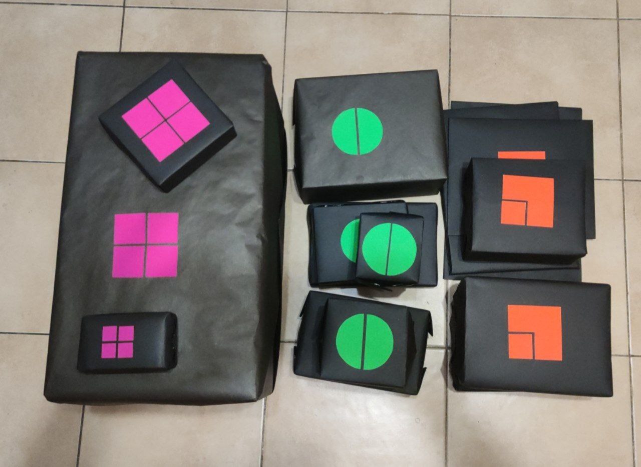 Если вы живёте с хэллдайвером, то вот вам идея для упаковки подарка или нескольких: берете черную упаковочную бумагу или черную бумагу для рисования и набор цветной неоновой самоклейки, ножницы, линейку, карандаш и двухсторонний скотч. Прилагаете две руки, прячетесь ночью на кухне, колхозите обёртку и ваш подарок или адвент календарь готов.