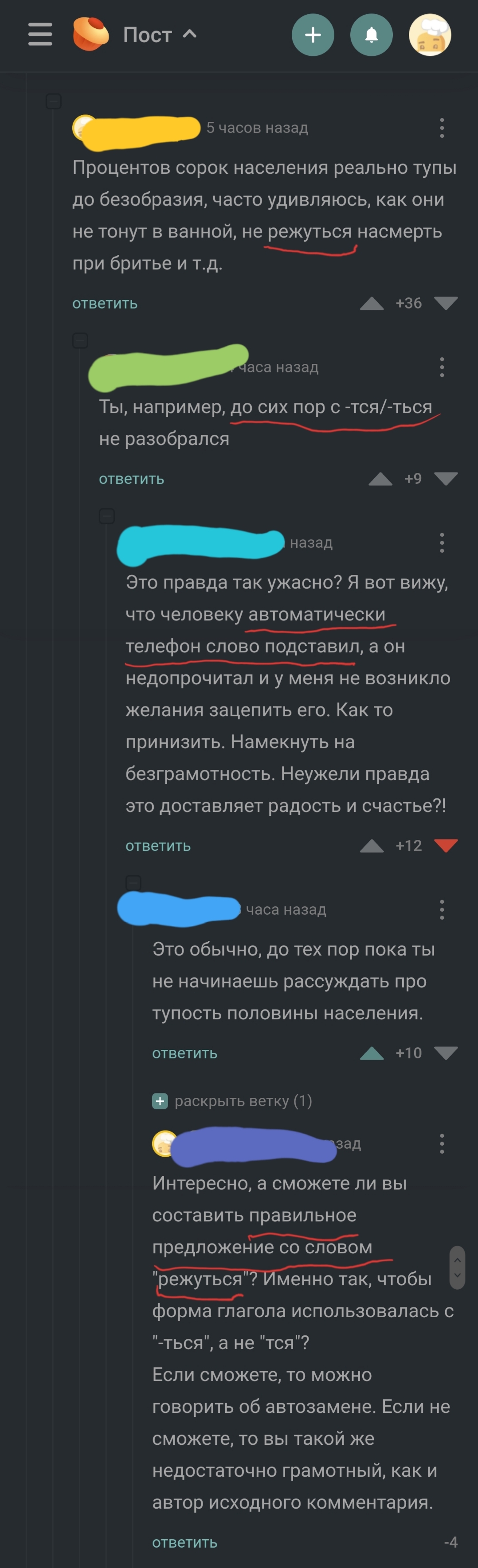 91 Аноним Адвокаты безграмотности 2 года назад Мне, в целом, по барабану, кто как пишет "тся" и "ться", хотя и бесит, но, обычно, своё отношение я оставляю при себе. Но подбешивает, когда вылазят "адвокаты безграмотности", что аж кушать не могу. Автозамена, ага. "по фиг кто как пишит главнае все панятна". Тся и ться Комментарии на Пикабу Длиннопост Скриншот 3 1 1 Ещё 0