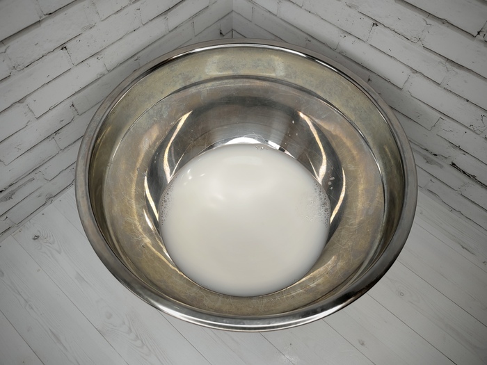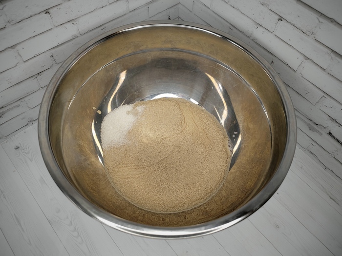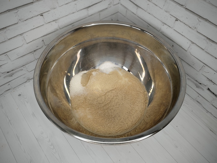 1. Смешаем молоко, теплую воду, соль, сахар, дрожжи, половину растительного масла и столовую ложку муки. Все это перемешаем и оставим в теплом месте минут на двадцать - пусть дрожжи "стартанут";