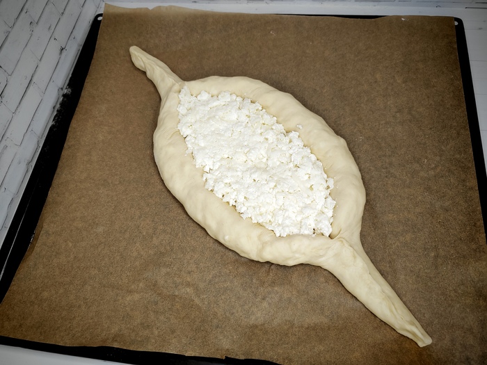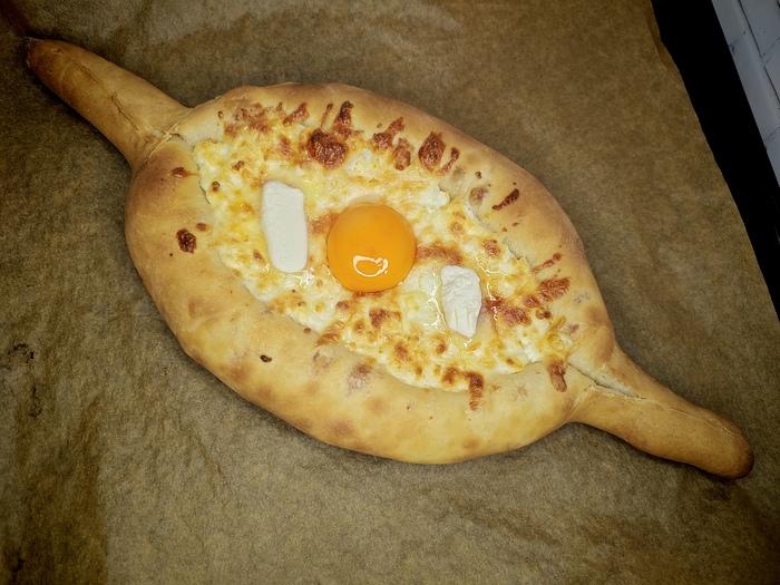 В общем, да, пирог в форме лодки, символизирующей... Кхм... Собственно, лодку. С яичным желтком, символизирующим солнце. И всё это, как неофициальный символ теплого приморского города Батуми (читать с характерным акцентом).