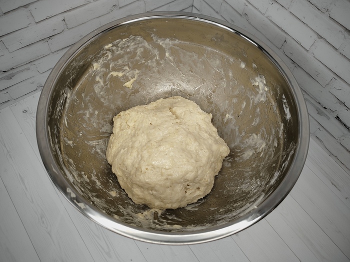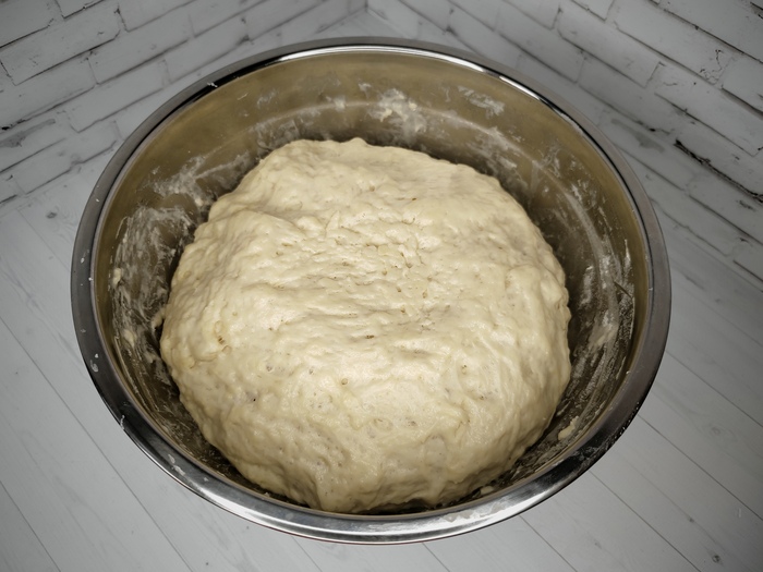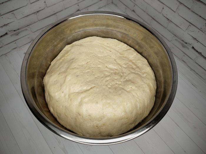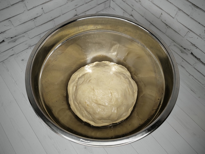 5. Спустя час, обминаем тесто, малость его вымешиваем, обмазываем оставшимся маслом и оставляем. Хотя бы, на пару-тройку часов. В идеале, на ночь. Если на ночь, то можно даже в холодильнике.
